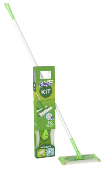 Swiffer Mop z łapaczem kurzu to idealne rozwiązanie do skutecznego sprzątania. W zestawie znajdziesz 1 mop oraz 8 wkładów suchych i 3 wkłady na mokro. Dzięki suchym tamponom, mop wychwytuje i zatrzymuje do 3 razy więcej kurzu, brudu i włosów niż tradycyjne miotły. Mokre wkłady skutecznie rozpuszczają i wchłaniają brud, co sprawia, że sprzątanie staje się szybsze i bardziej efektywne.