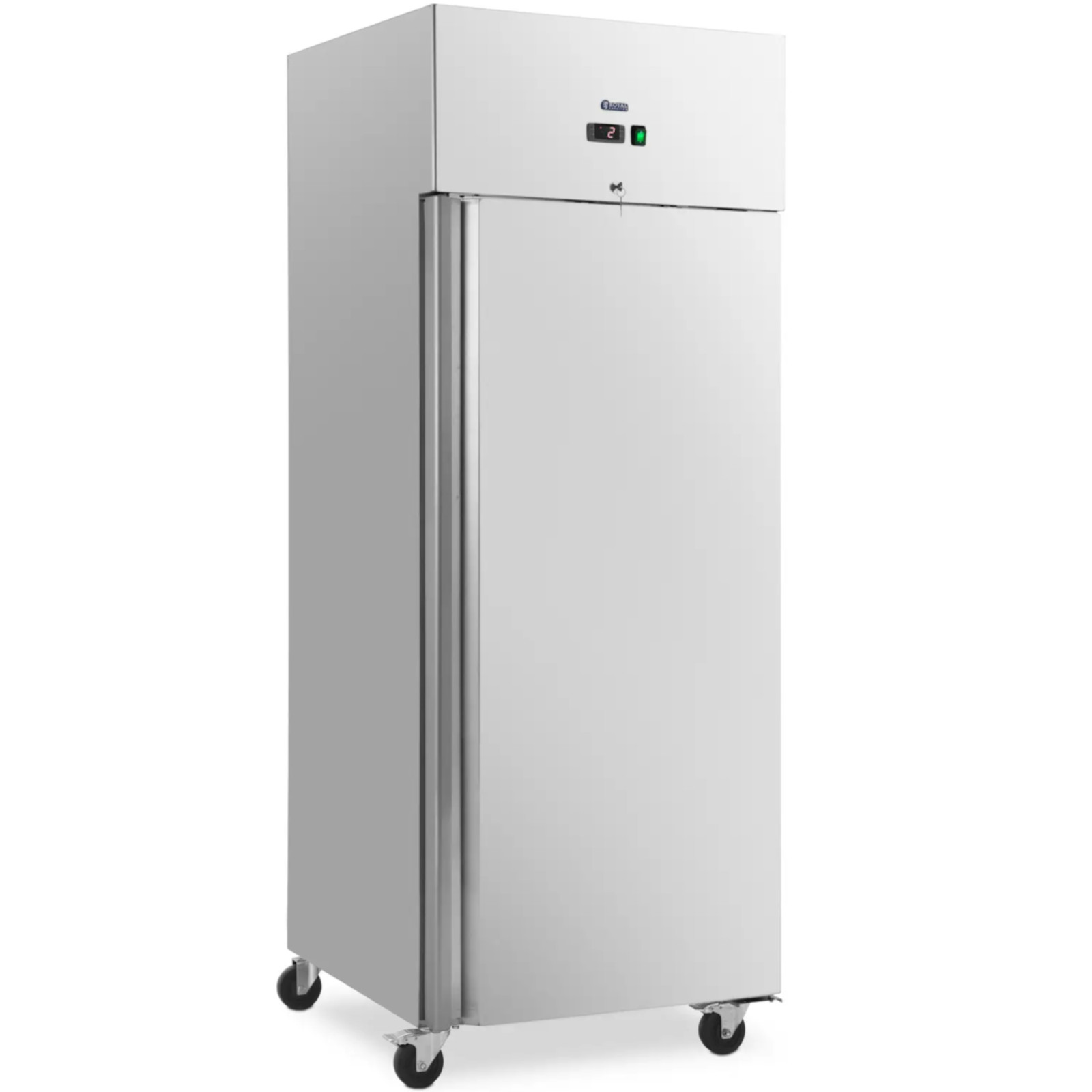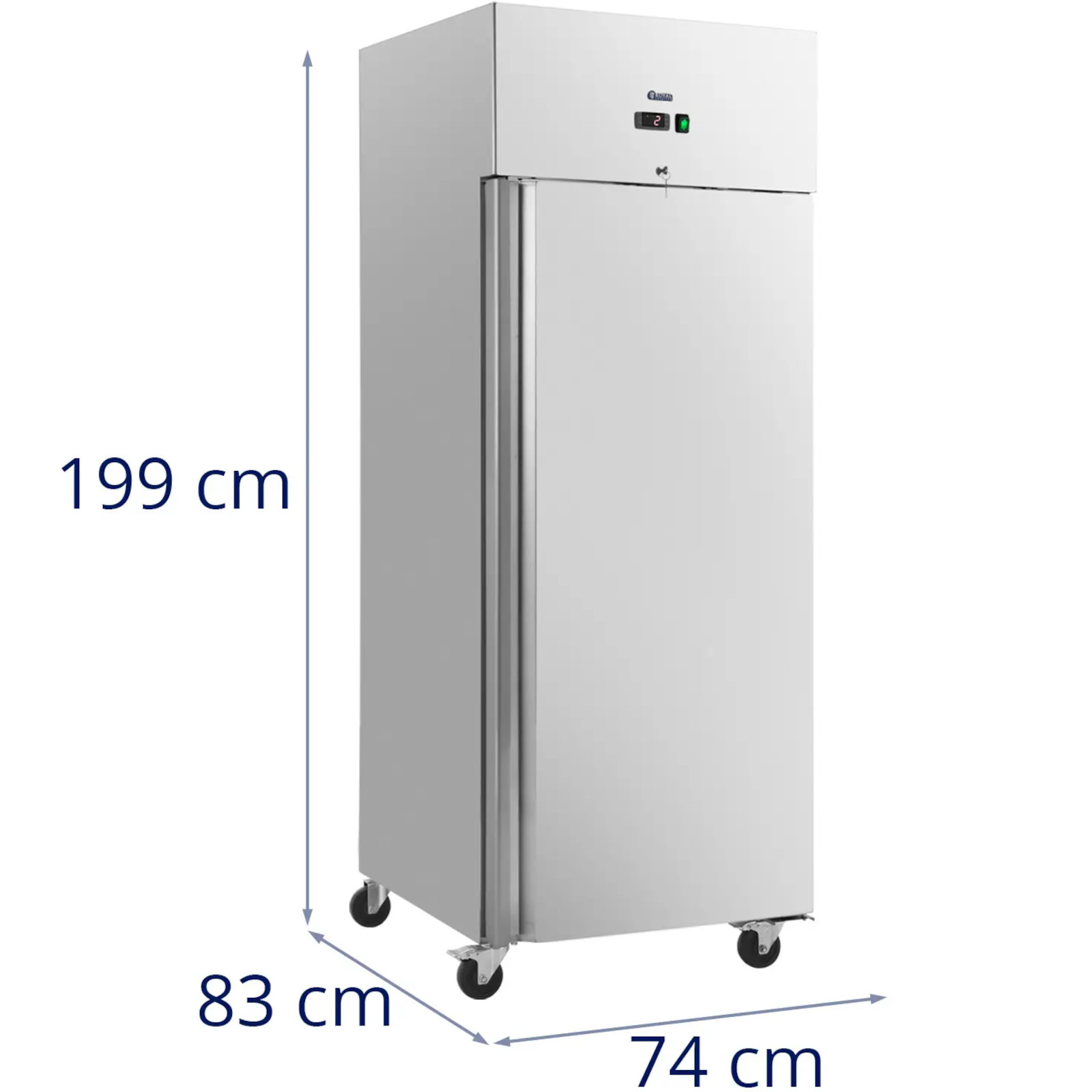 Szafa chłodnicza o pojemności 485 litrów to doskonałe rozwiązanie do przechowywania żywności w gastronomii. Jej mobilność zapewniają cztery kółka, co ułatwia przemieszczanie urządzenia w kuchni lub magazynie.