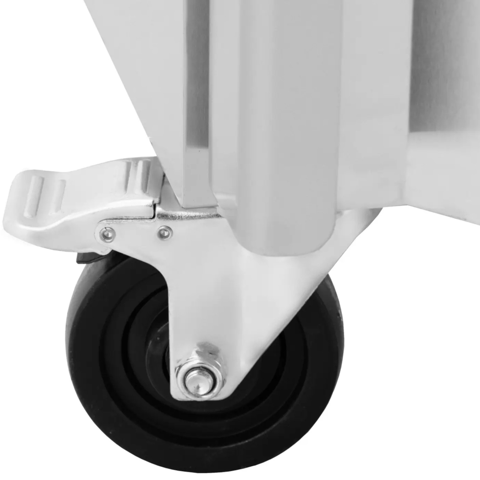 Urządzenie jest wyposażone w cztery kółka, co ułatwia jego przemieszczanie, nawet po nierównych powierzchniach. Dodatkowo, hamulce zapewniają stabilność, co zwiększa komfort użytkowania. Szafa jest zamykana na klucz, co gwarantuje bezpieczeństwo przechowywanych produktów.