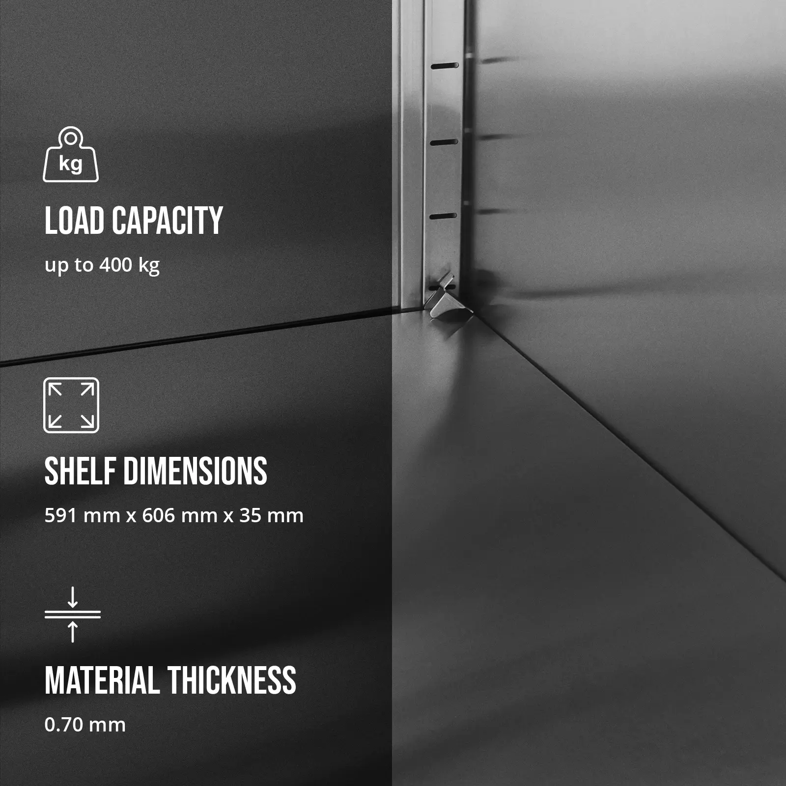 Wykonana z wytrzymałej stali nierdzewnej, ta szafa cechuje się nośnością do 400 kg, co sprawia, że jest idealna do przechowywania różnorodnych naczyń i przyborów kuchennych. Jej trzy regulowane półki o wymiarach 591 x 606 x 35 mm każda, mają nośność do 100 kg i są dostosowane do potrzeb użytkowników.