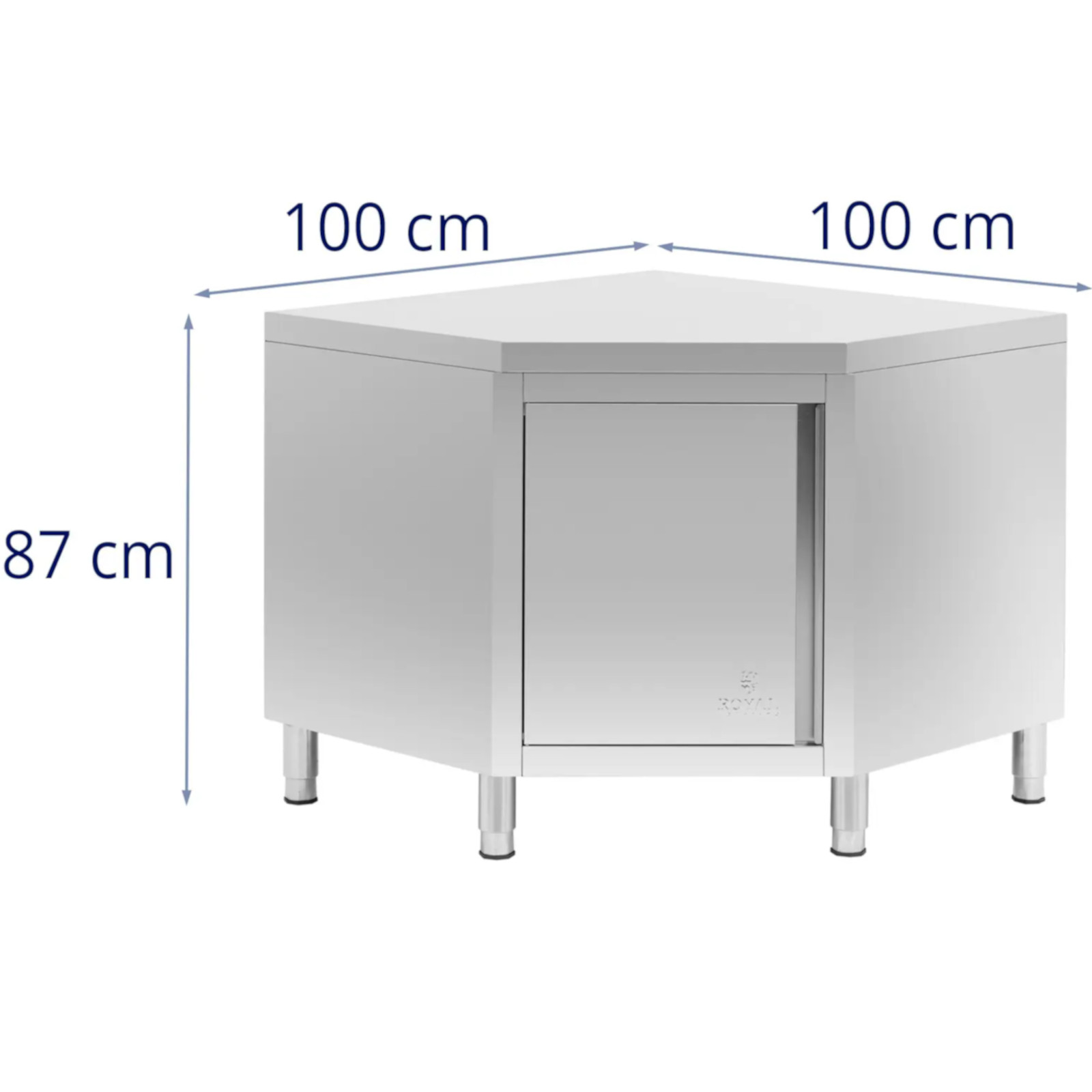 Szafa narożna, idealna do profesjonalnych kuchni, wykonana z wysokiej jakości stali nierdzewnej. Dzięki wymiarom blatu roboczego 100 x 100 cm zapewnia obszerną przestrzeń na składniki oraz sprzęt kuchenny. Stal nierdzewna gwarantuje odpowiednią higienę oraz łatwość w utrzymaniu czystości.
