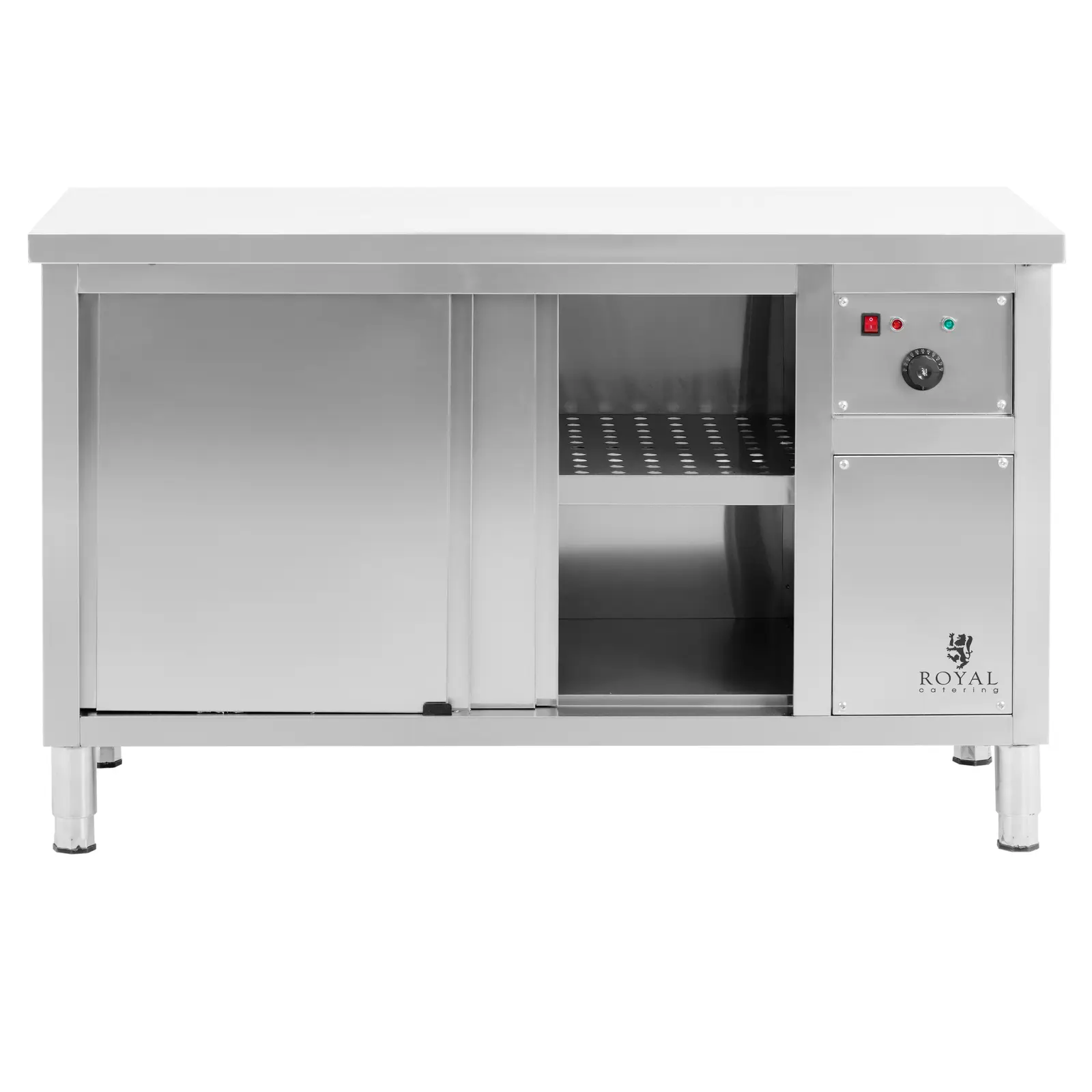 Szafa grzewcza ma również solidną konstrukcję. Blat roboczy o wymiarach 140 x 60 cm i grubości 47 mm jest wzmocniony płytą MDF Omega, co zapewnia stabilność podczas pracy. Wykonana ze stali nierdzewnej (304) konstrukcja jest odporna na korozję i spełnia wymagania gastronomiczne.