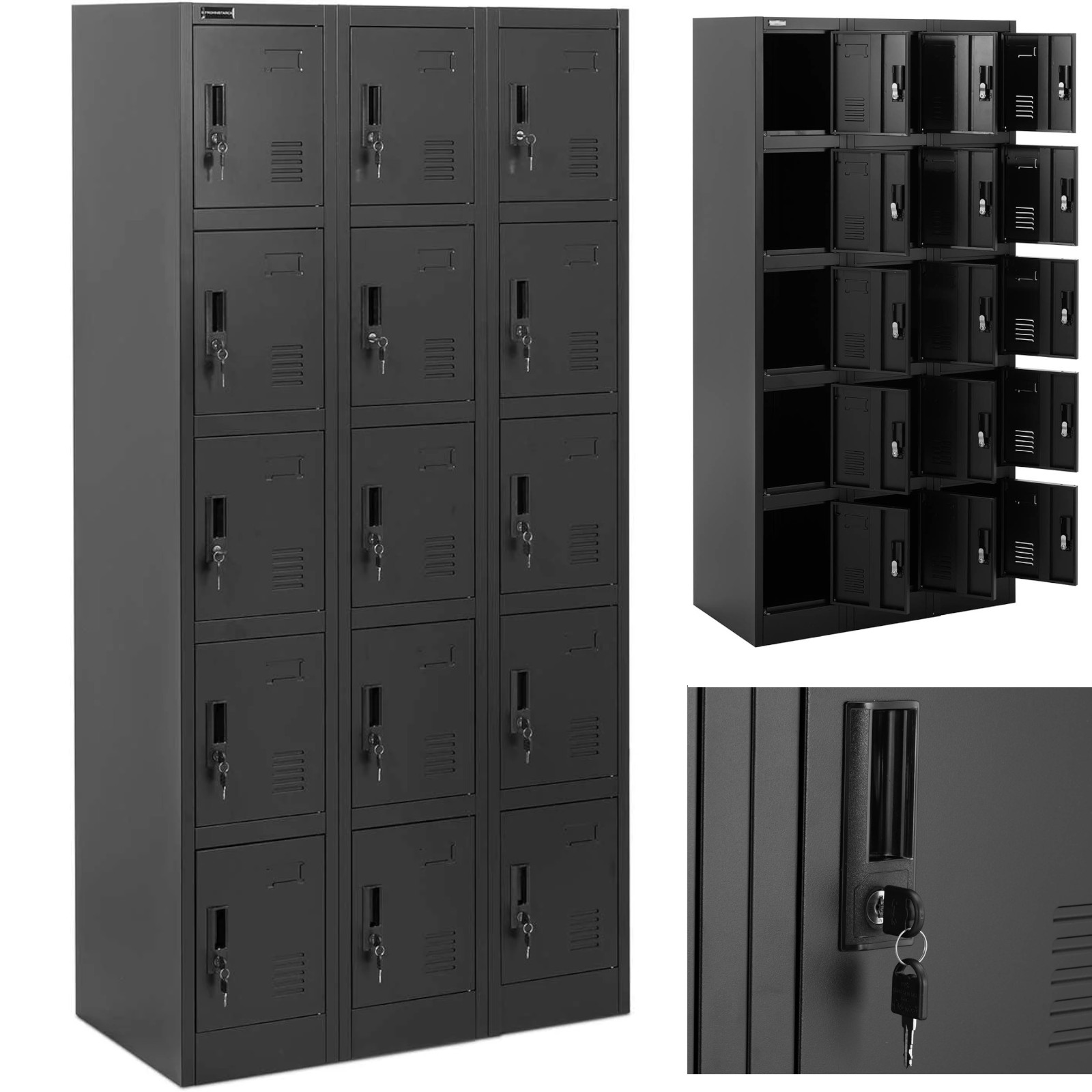 W zestawie znajduje się szafa metalowa z kluczami, akcesoria montażowe oraz instrukcja obsługi. To praktyczne rozwiązanie do każdego pomieszczenia, które potrzebuje bezpiecznego miejsca na przechowywanie rzeczy osobistych.