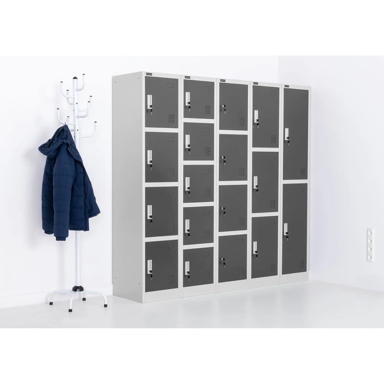 Szafa metalowa marki Fromm Starck to funkcjonalne rozwiązanie do przechowywania różnych przedmiotów. Idealnie sprawdzi się w biurach, urzędach, bibliotekach, szkołach oraz na siłowniach i w klubach fitness. Dzięki pięciu przegrodom, każda z nośnością do 20 kg, zapewnia dużo miejsca na dokumenty i ubrania.