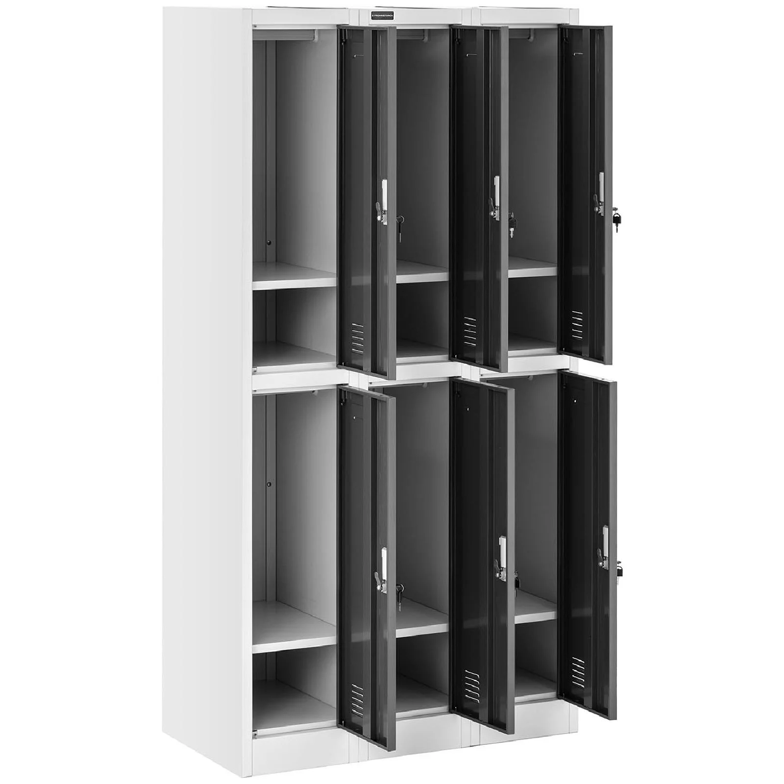 Oferujemy funkcjonalną szafę socjalną, idealną do przechowywania rzeczy osobistych w szatniach, szkołach, bibliotekach czy siłowniach. Posiada 6 skrytek, każda z mechanicznie zamykanym zamkiem, co zapewnia bezpieczeństwo przechowywanych przedmiotów. Do każdej szafki dołączone są dwa klucze.