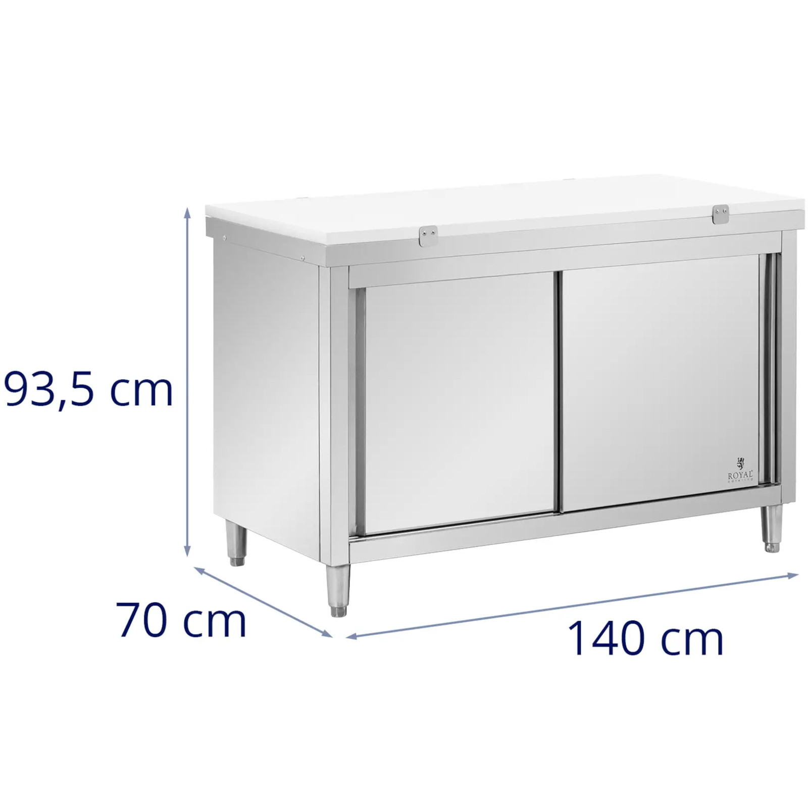 W zestawie znajduje się szafka gastronomiczna z deską do krojenia, co czyni ją kompletnym rozwiązaniem dla profesjonalnych kuchni.