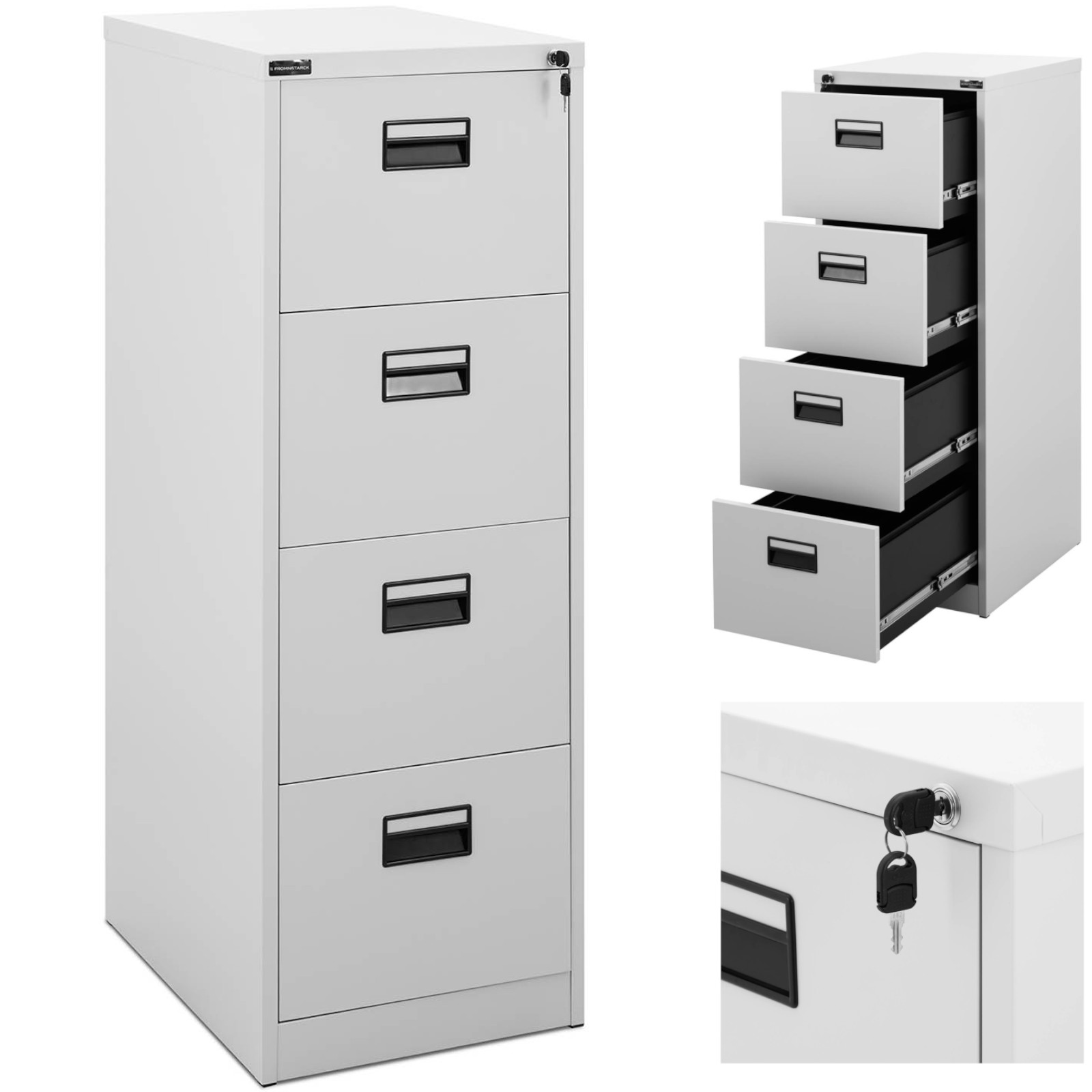 Szafka kartotekowa marki Fromm Starck to idealne rozwiązanie do każdego biura. Dzięki solidnej konstrukcji z blachy walcowanej na zimno i pokryciu żywicą epoksydową, zapewnia trwałość i odporność na uszkodzenia. Zamykana na klucz, gwarantuje bezpieczeństwo przechowywanych dokumentów.