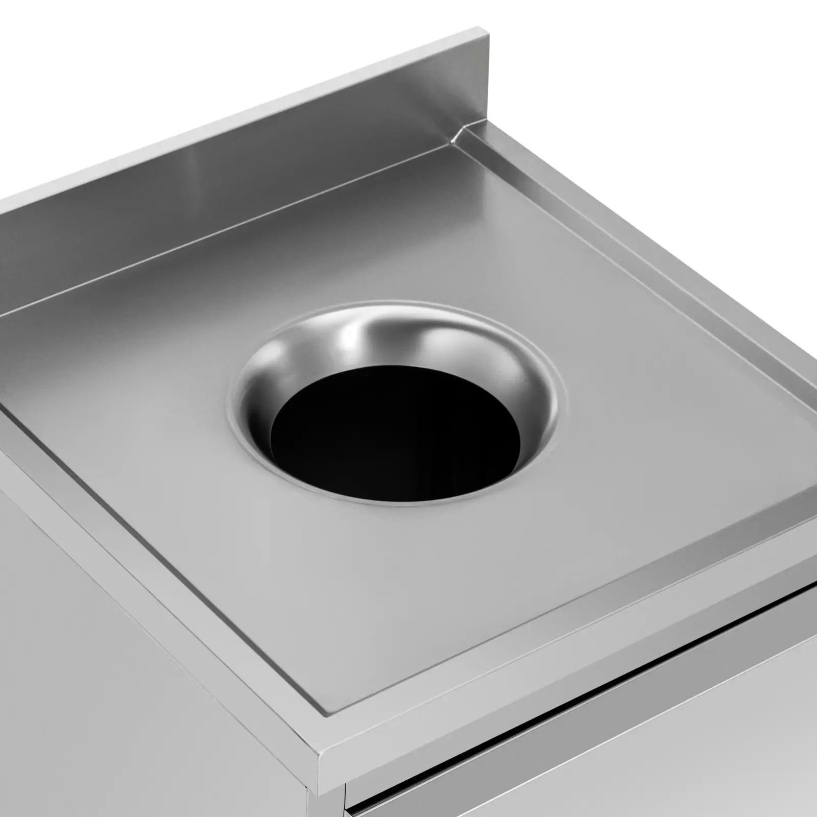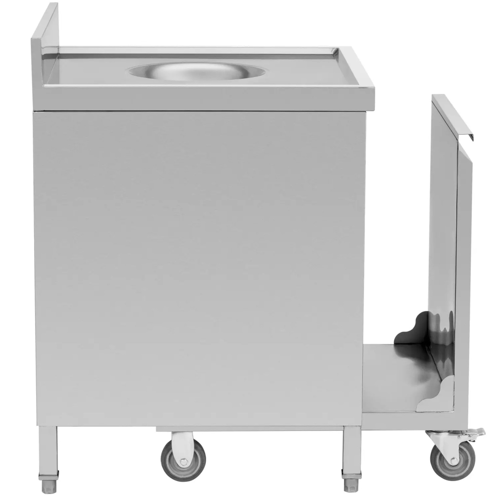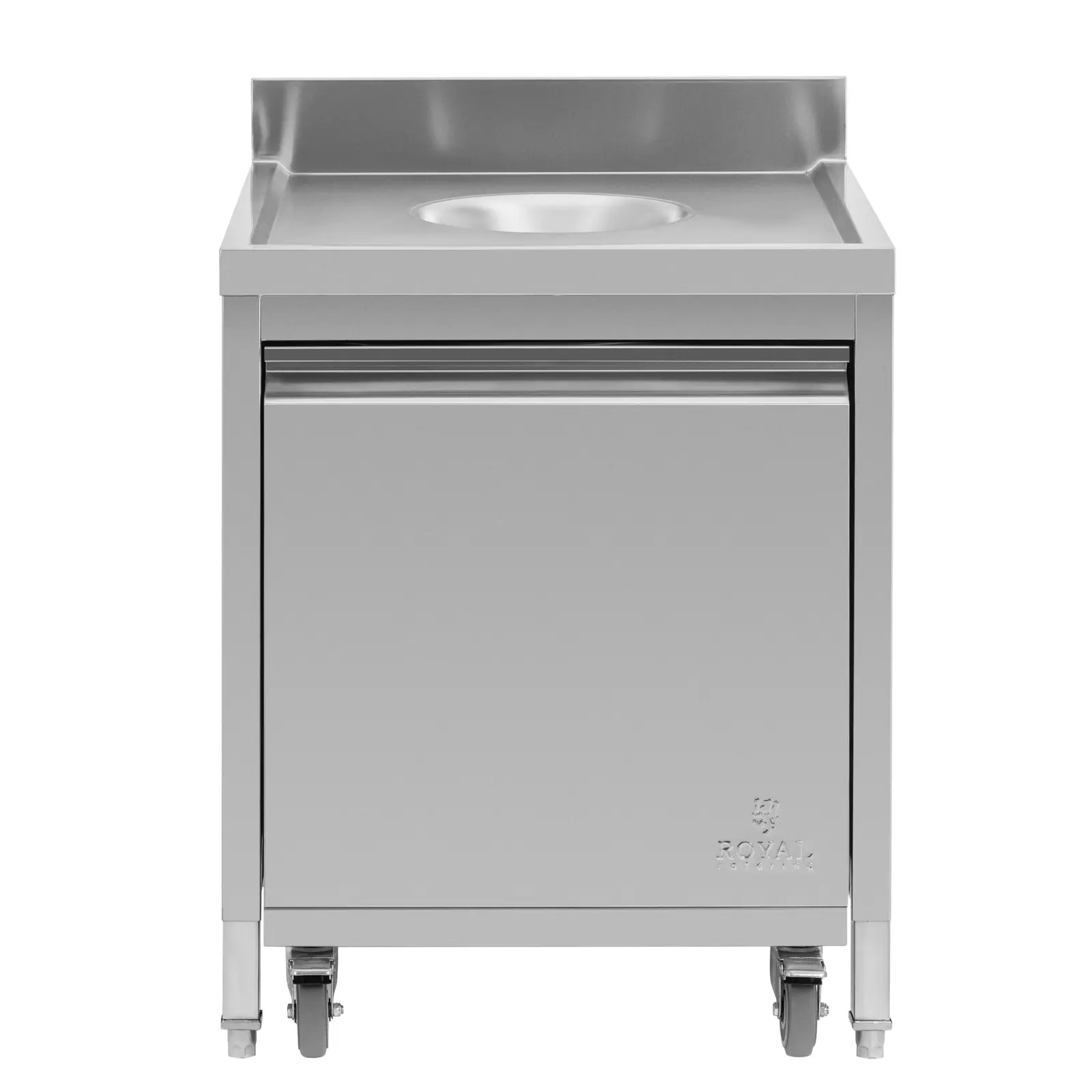 Kosz na śmieci marki Royal Catering to idealne rozwiązanie dla skutecznego zarządzania odpadami w różnych miejscach, takich jak kuchnie, biura czy budynki użyteczności publicznej. Posiada pojemność 50 l, co umożliwia wygodne wyrzucanie odpadków. Wykonany ze stali nierdzewnej, jest łatwy w pielęgnacji i odporny na uderzenia, co zapewnia jego trwałość na lata. Kosz ma okrągły otwór wrzutowy o średnicy 23 cm, co pozwala na szybkie i czyste pozbywanie się resztek. Wysuwany front umożliwia łatwą wymianę worków, a rant o wysokości 10 cm chroni otoczenie przed zachlapaniem. Dzięki mobilnej obudowie na kółkach z hamulcami, przemieszczenie kosza jest łatwe i bezpieczne. Wymiary kosza to 700 x 700 x 870 mm (wysokość z rantem), a jego waga wynosi 32 kg. W zestawie znajduje się również obudowa na kółkach oraz rant, co zwiększa funkcjonalność produktu. Kosz na śmieci Royal Catering to doskonały wybór dla miejsc o dużym natężeniu ruchu, gdzie efektywność i higiena są kluczowe.