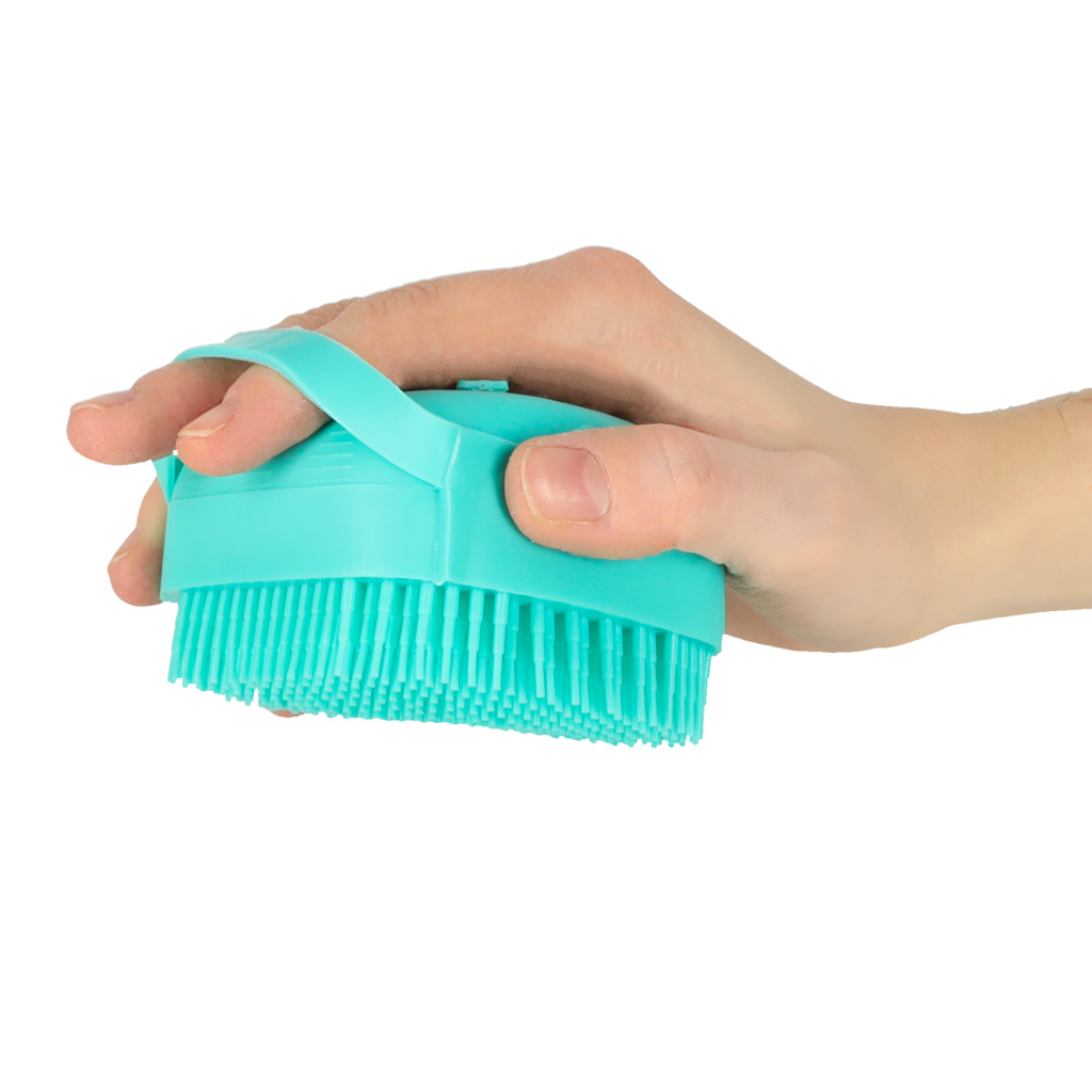 Wbudowany zbiornik na szampon umożliwia łatwe dozowanie środka czyszczącego. Wystarczy odkręcić korek, wlać preparat i przycisnąć szczotkę, aby uwolnić płyn podczas mycia. Możesz także stosować ją do czesania na sucho, co czyni ją wszechstronnym akcesorium.