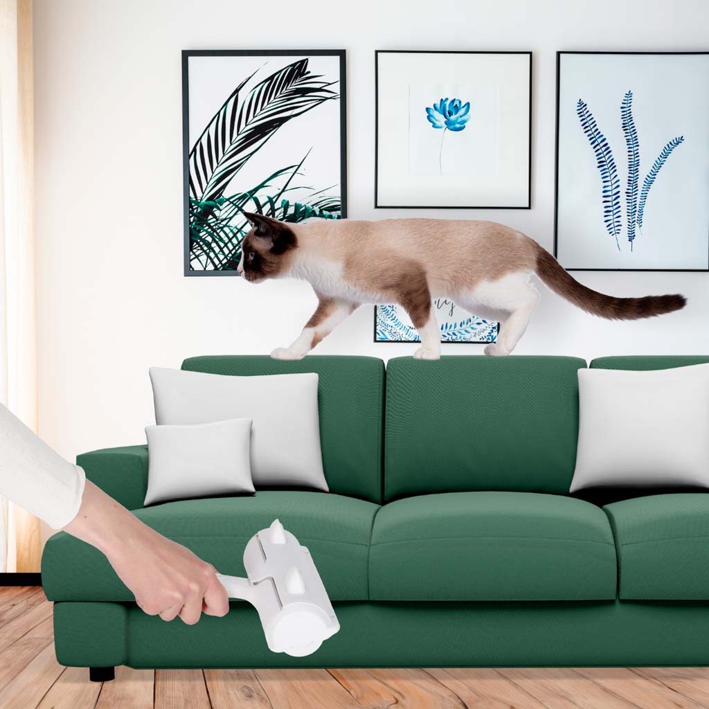 Aby uzyskać najlepsze efekty, upewnij się, że powierzchnia jest całkowicie sucha. Na mokrych nawierzchniach szczotka nie działa. Jej specjalna konstrukcja pozwala dotrzeć do głęboko osadzonej sierści, a wszystkie kłaczki i paprochy zostają zamknięte w pojemniku.
