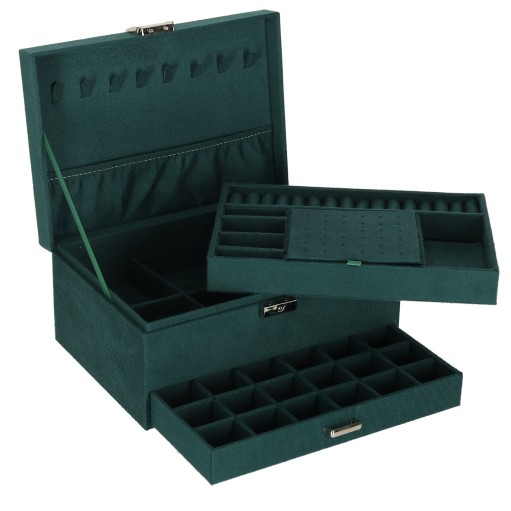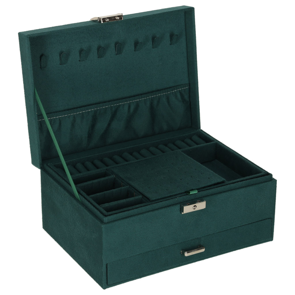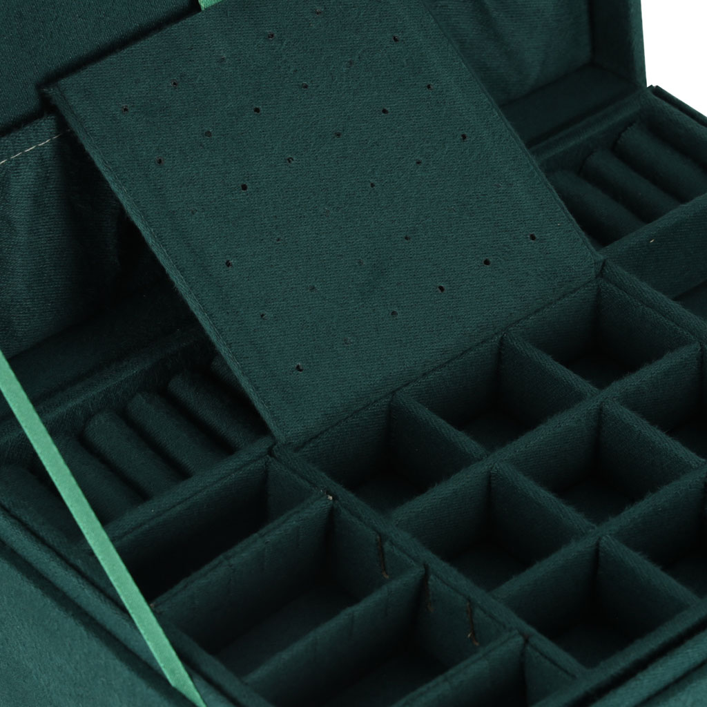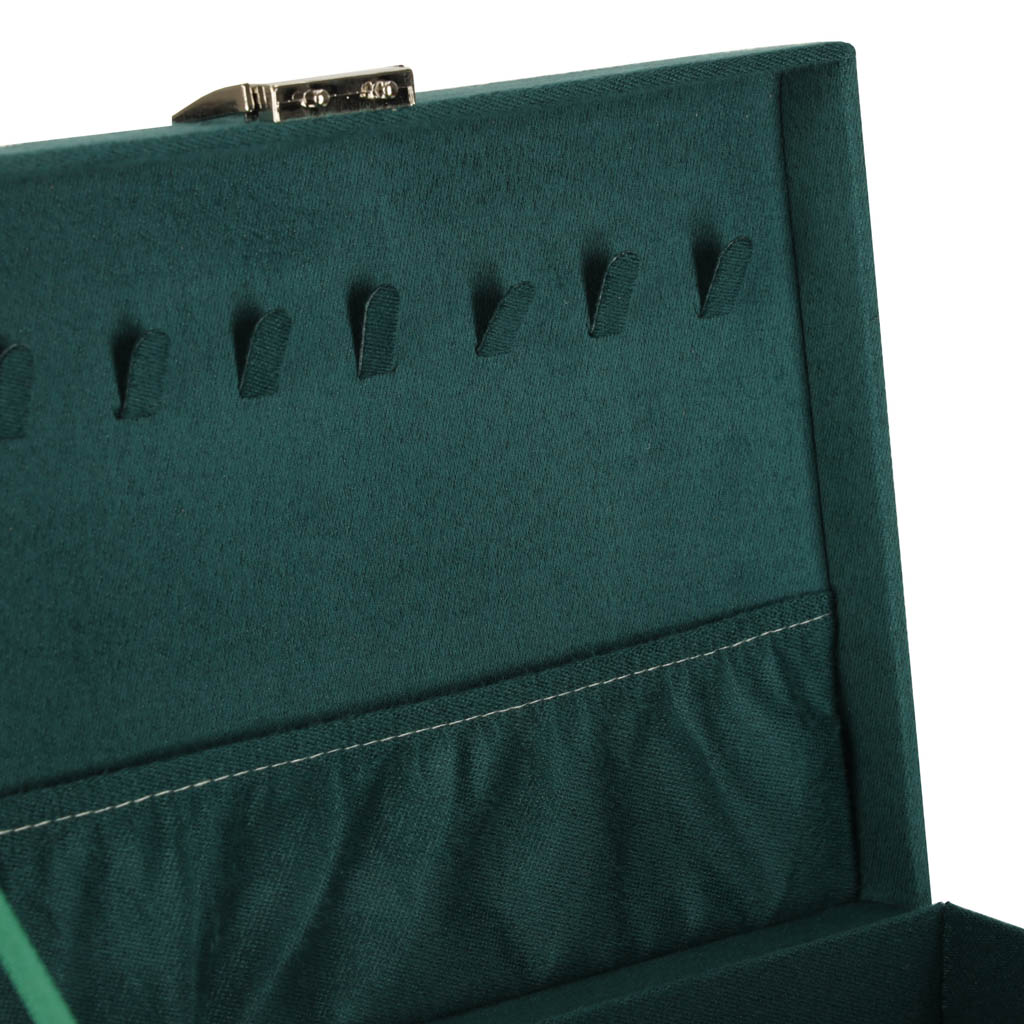 Organizuj swoją biżuterię w elegancki sposób! Nasza szkatułka w zielonym kolorze to idealne rozwiązanie dla każdej miłośniczki dodatków. Dzięki wielości przegródek, możesz w niej przechowywać biżuterię różnej wielkości, co pomoże Ci w utrzymaniu porządku.
