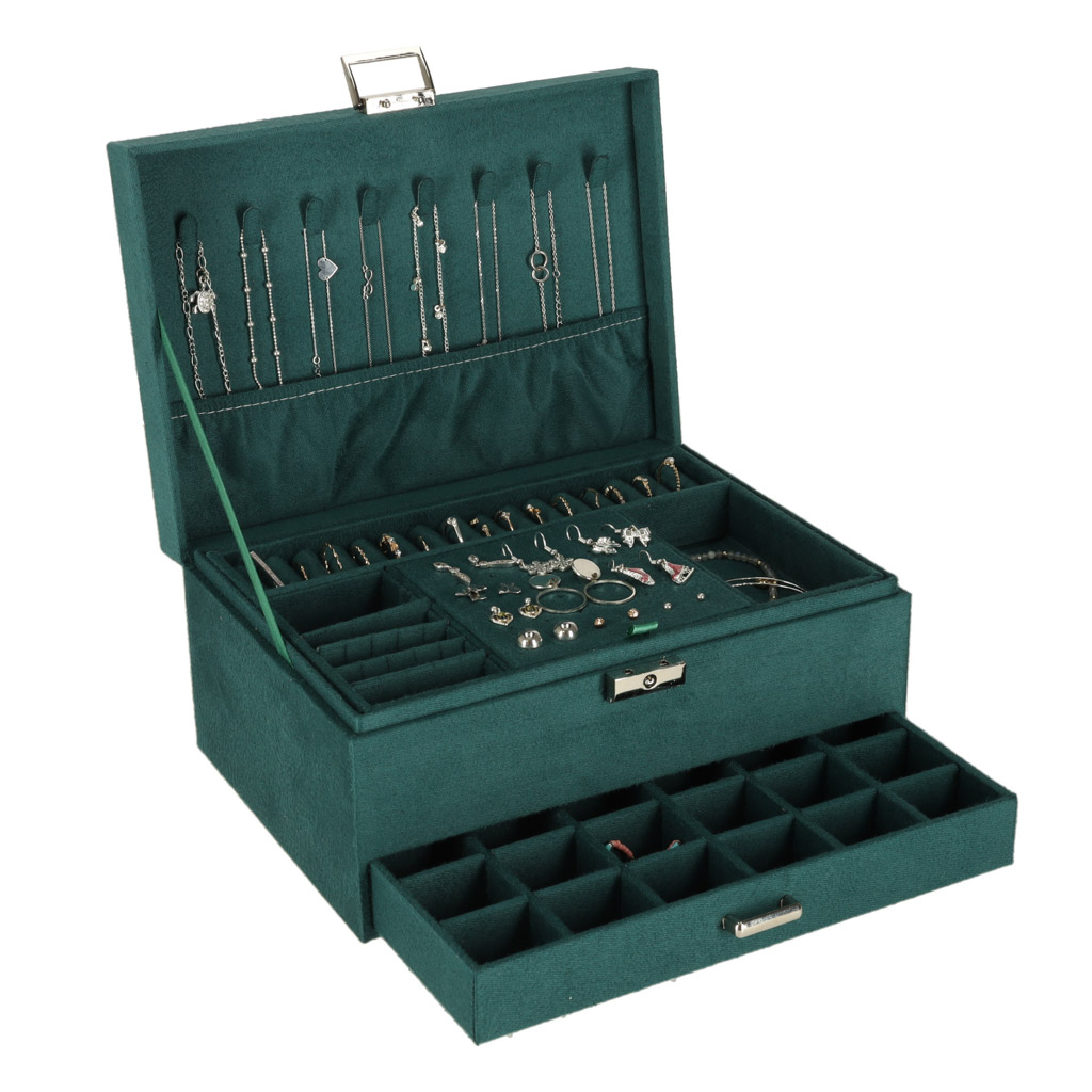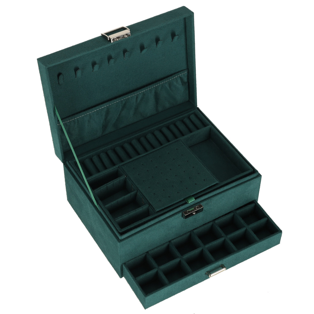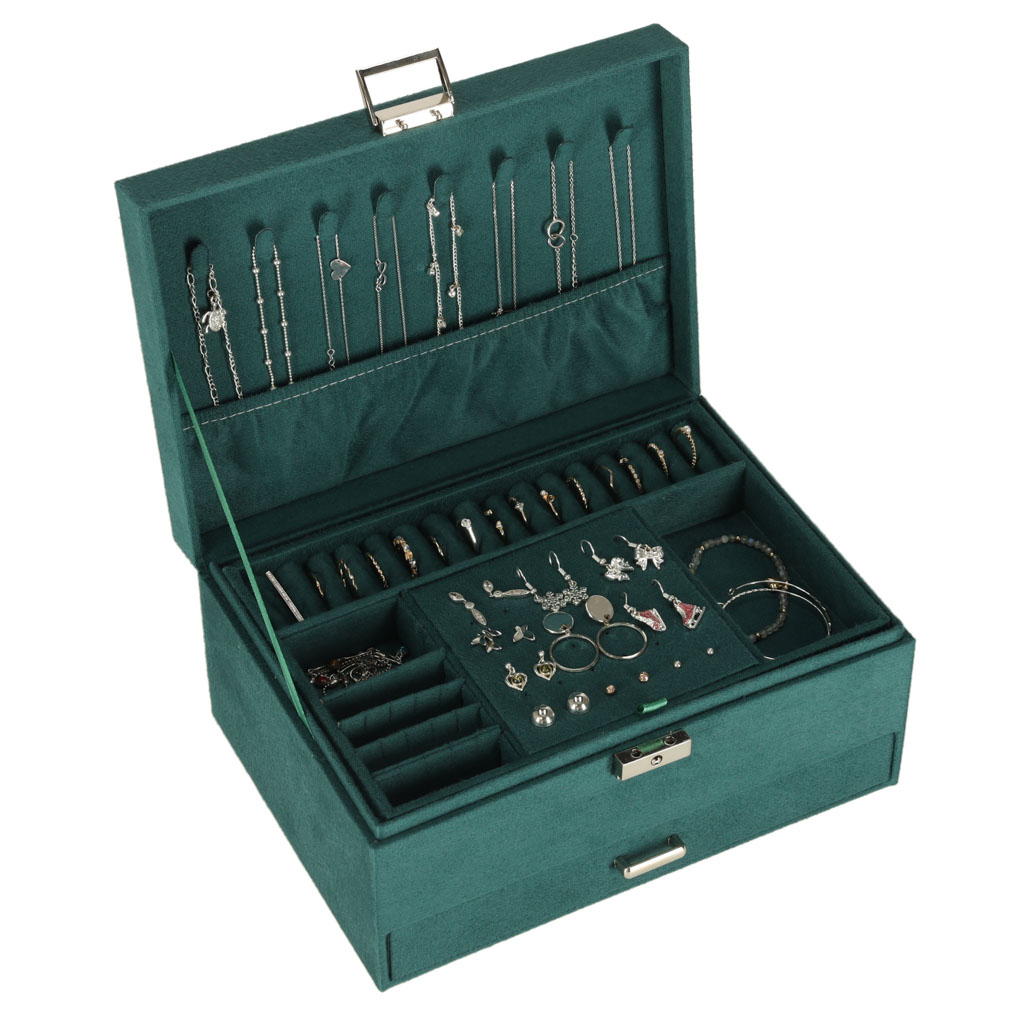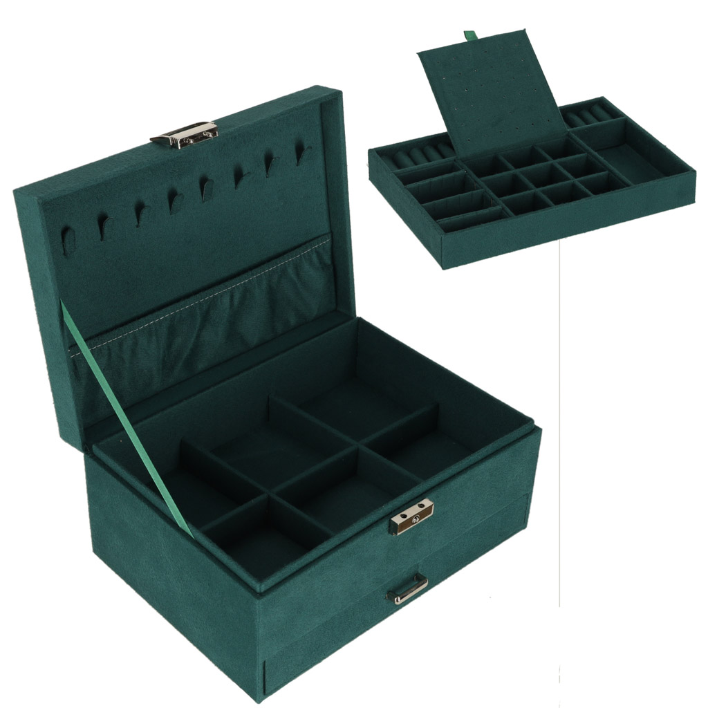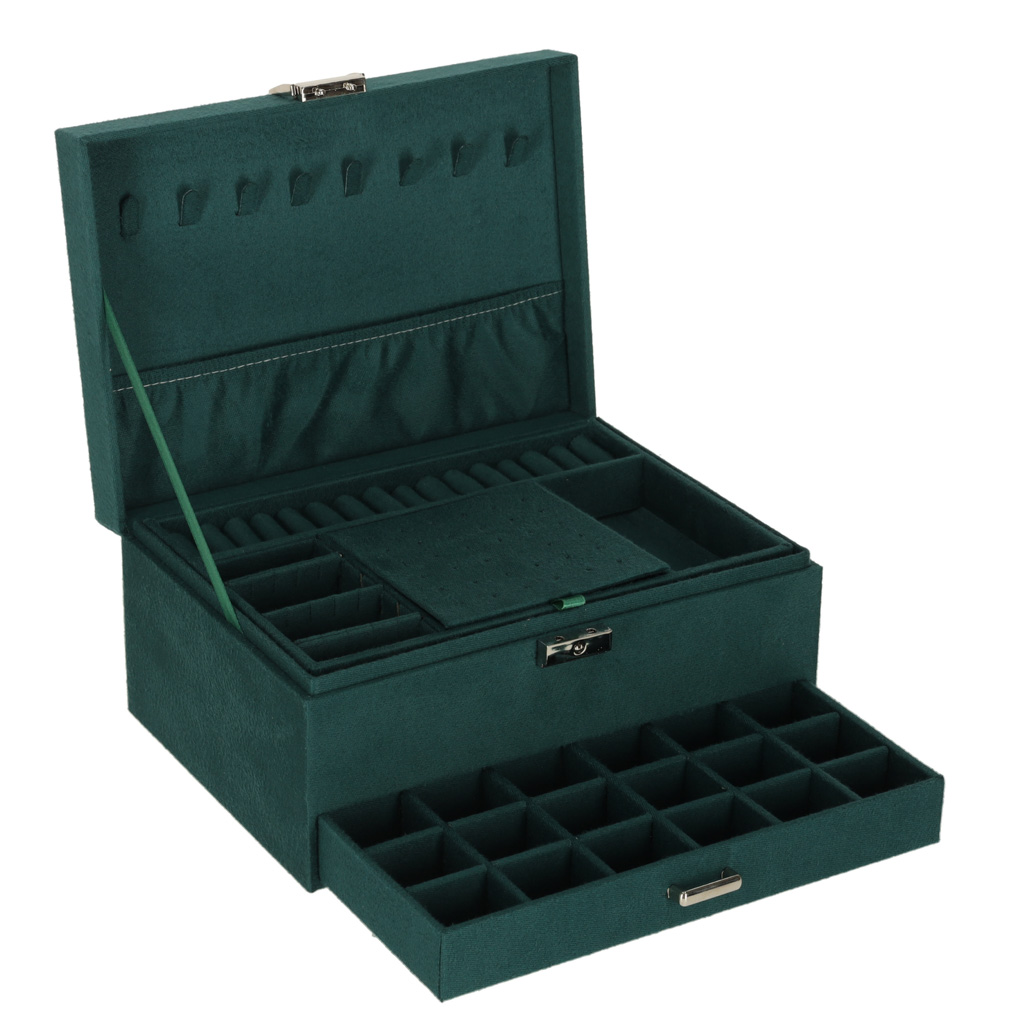 Organizuj swoją biżuterię w elegancki sposób! Nasza szkatułka w zielonym kolorze to idealne rozwiązanie dla każdej miłośniczki dodatków. Dzięki wielości przegródek, możesz w niej przechowywać biżuterię różnej wielkości, co pomoże Ci w utrzymaniu porządku.