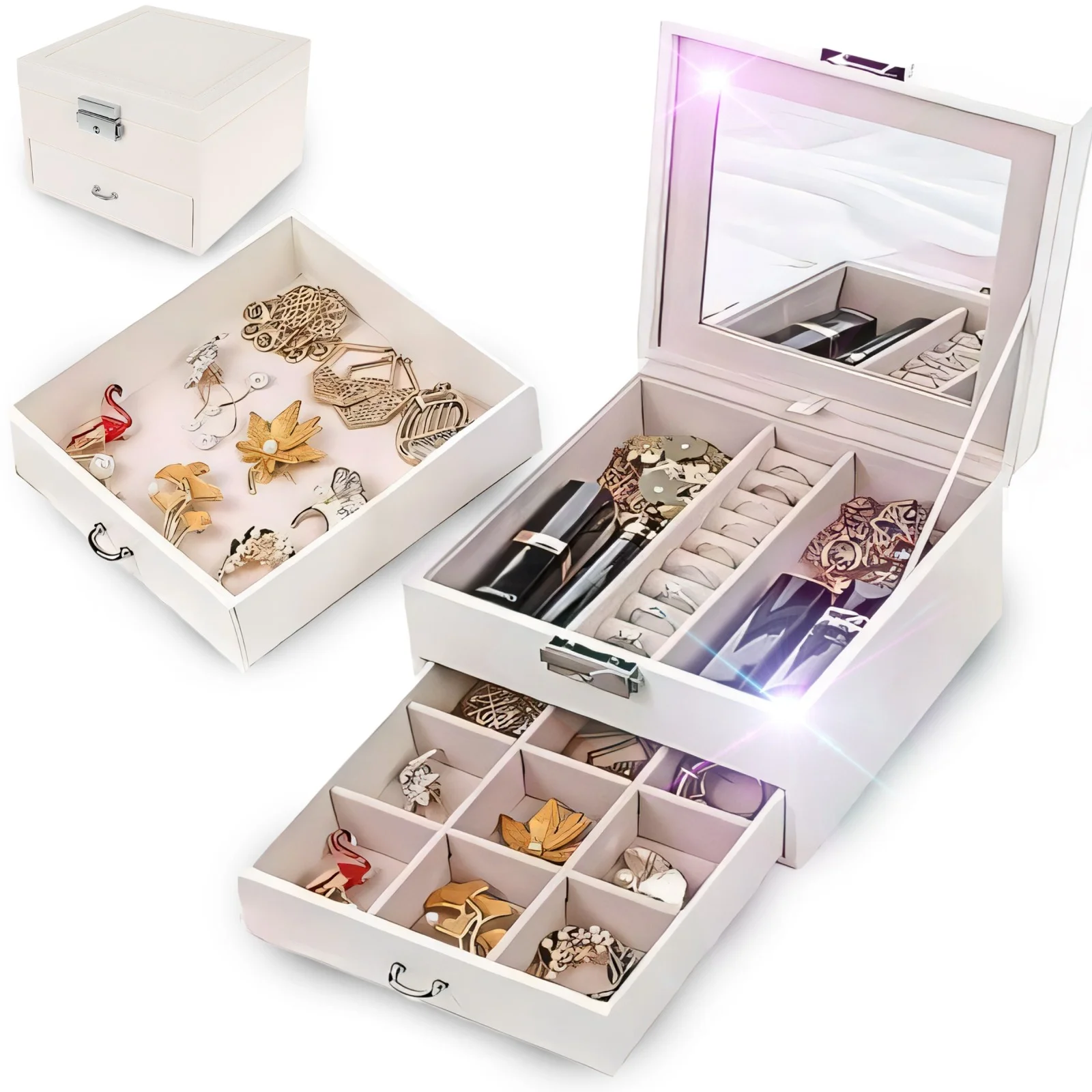 Szkatułka pudełko organizer na biżuterię - kremowy