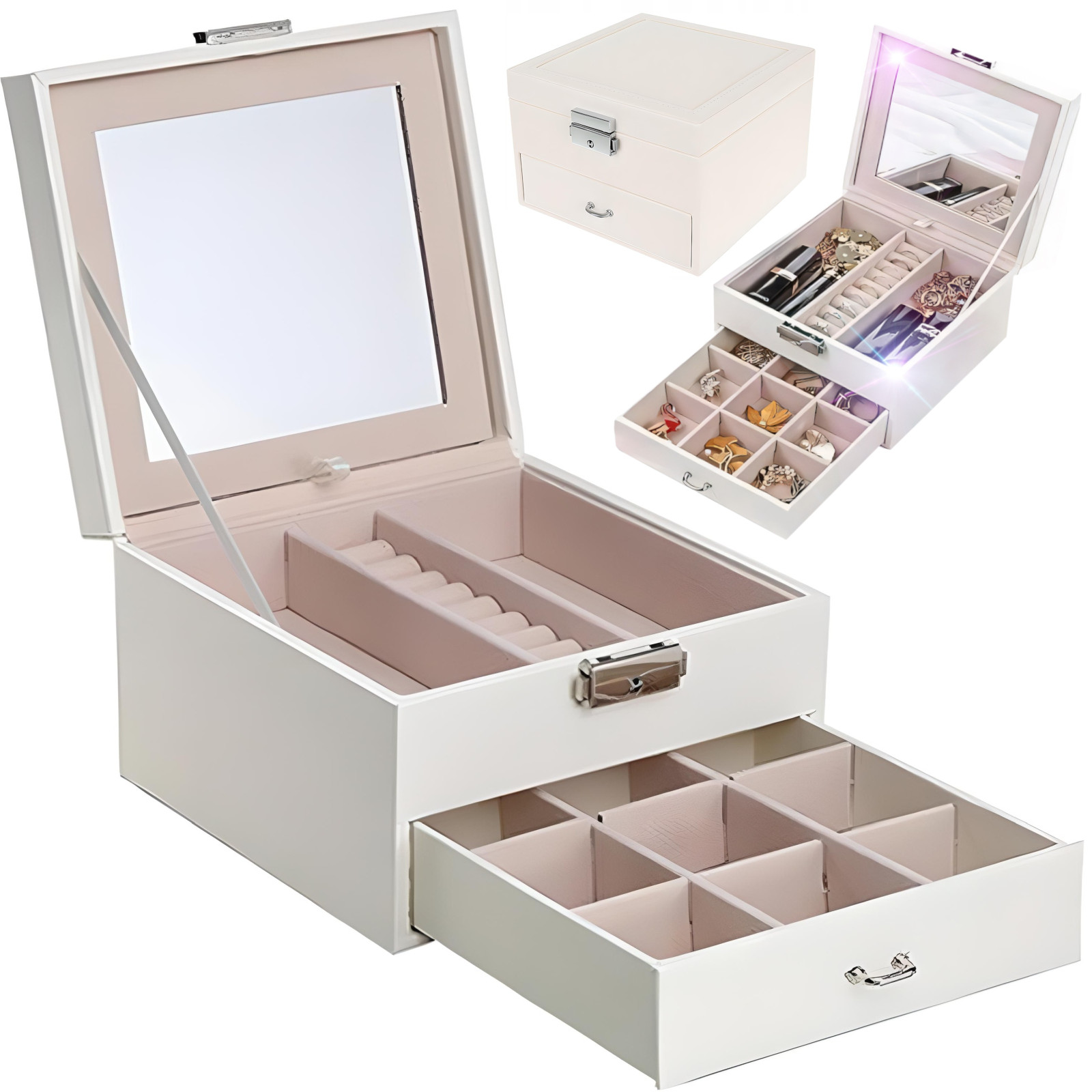 Szkatułka pudełko organizer na biżuterię pierścionki z szufladą - kremowy