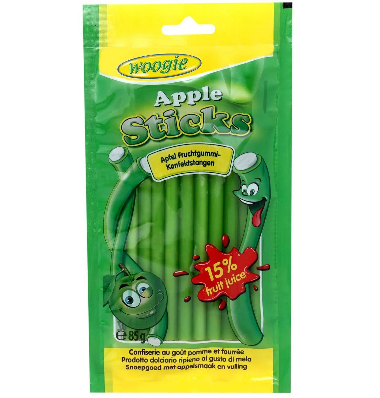 Woogie Apple Sticks Żelki Jabłkowe Nadziewane 85 g