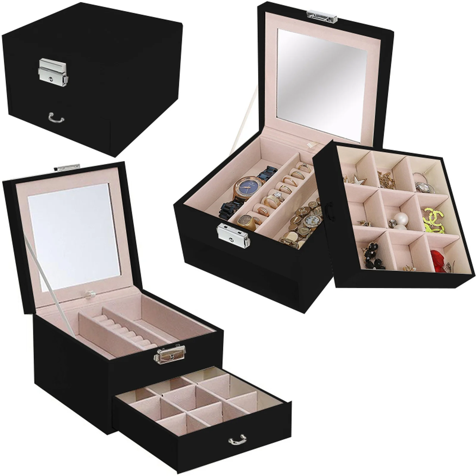Szkatułka pudełko organizer na biżuterię z lusterkiem szufladą - czarny