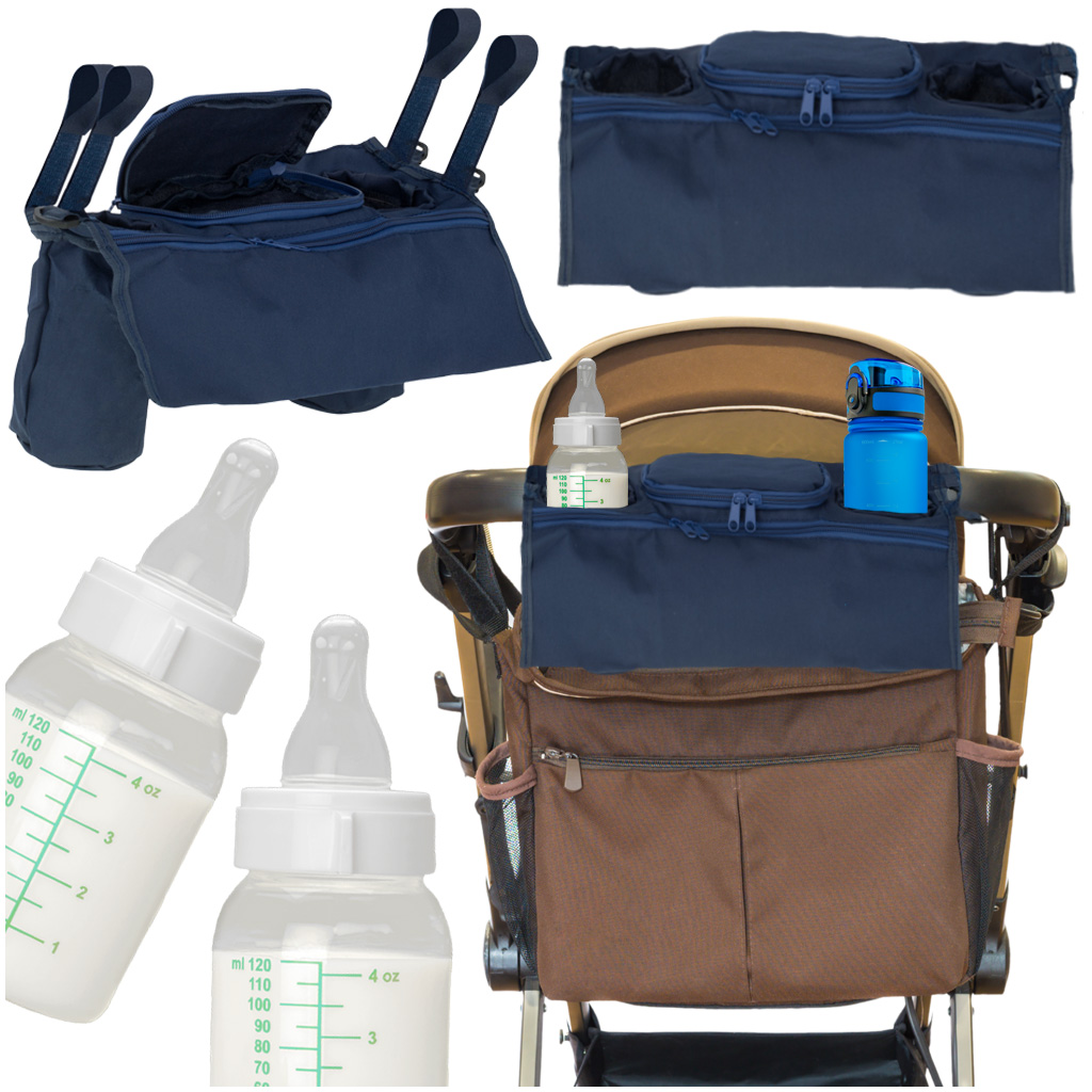 Organizer torba saszetka do wózka uchwyt na napoje butelkę granatowy