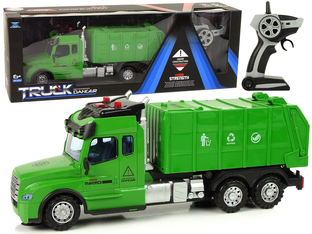 Zdalnie Sterowana Śmieciarka Pilot 2,4G Światła Dźwięki Zielona