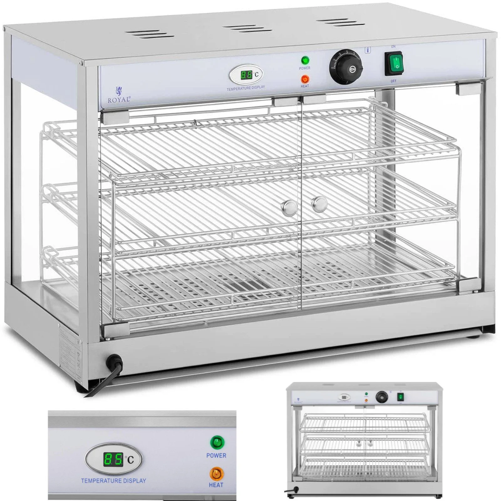 Witryna grzewcza podgrzewana do prezentacji żywności 3 półki 25-85C 1200W