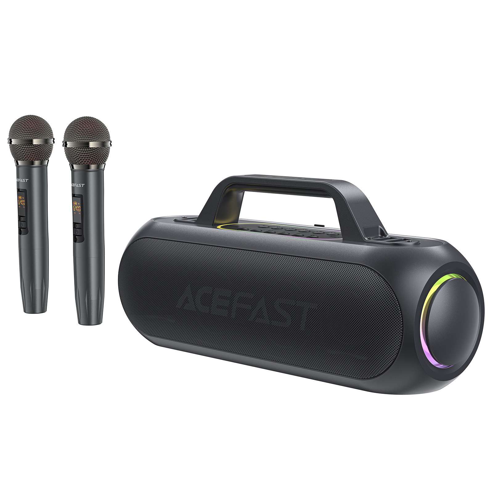 Głośnik bezprzewodowy do karaoke 200W z 2 mikrofonami USB-C czarny