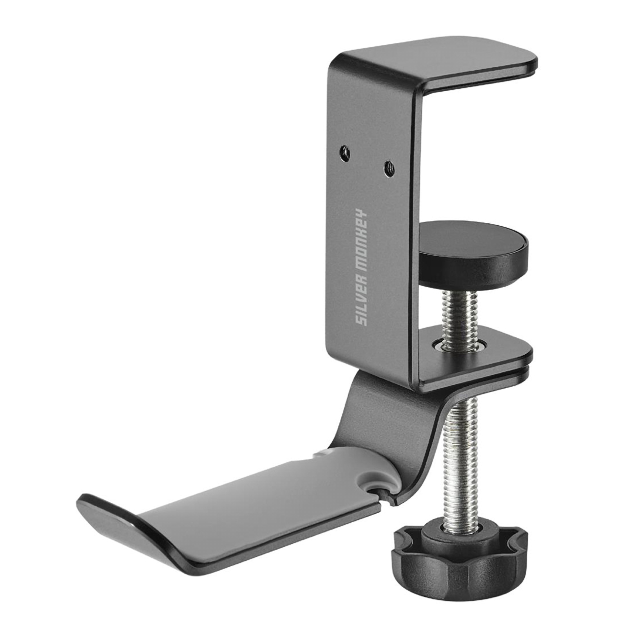 Uchwyt półka na słuchawki mocowany do blatu biurka czarny