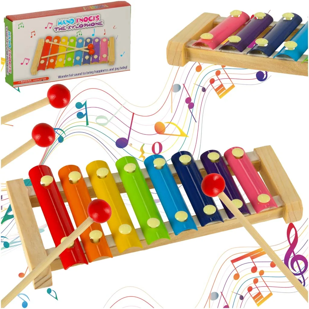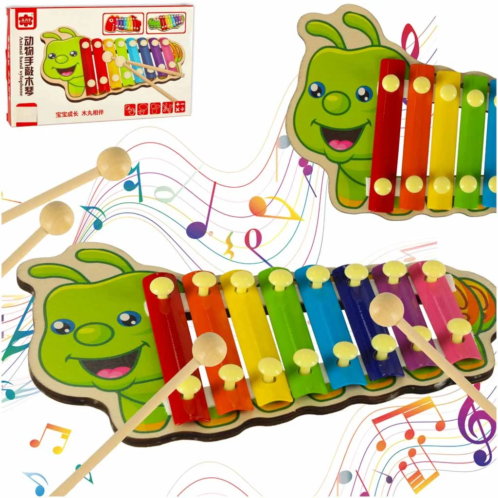 Cymbałki drewniane kolorowe dla dzieci szkolne edukacyjne pałki pałeczki krokodyl