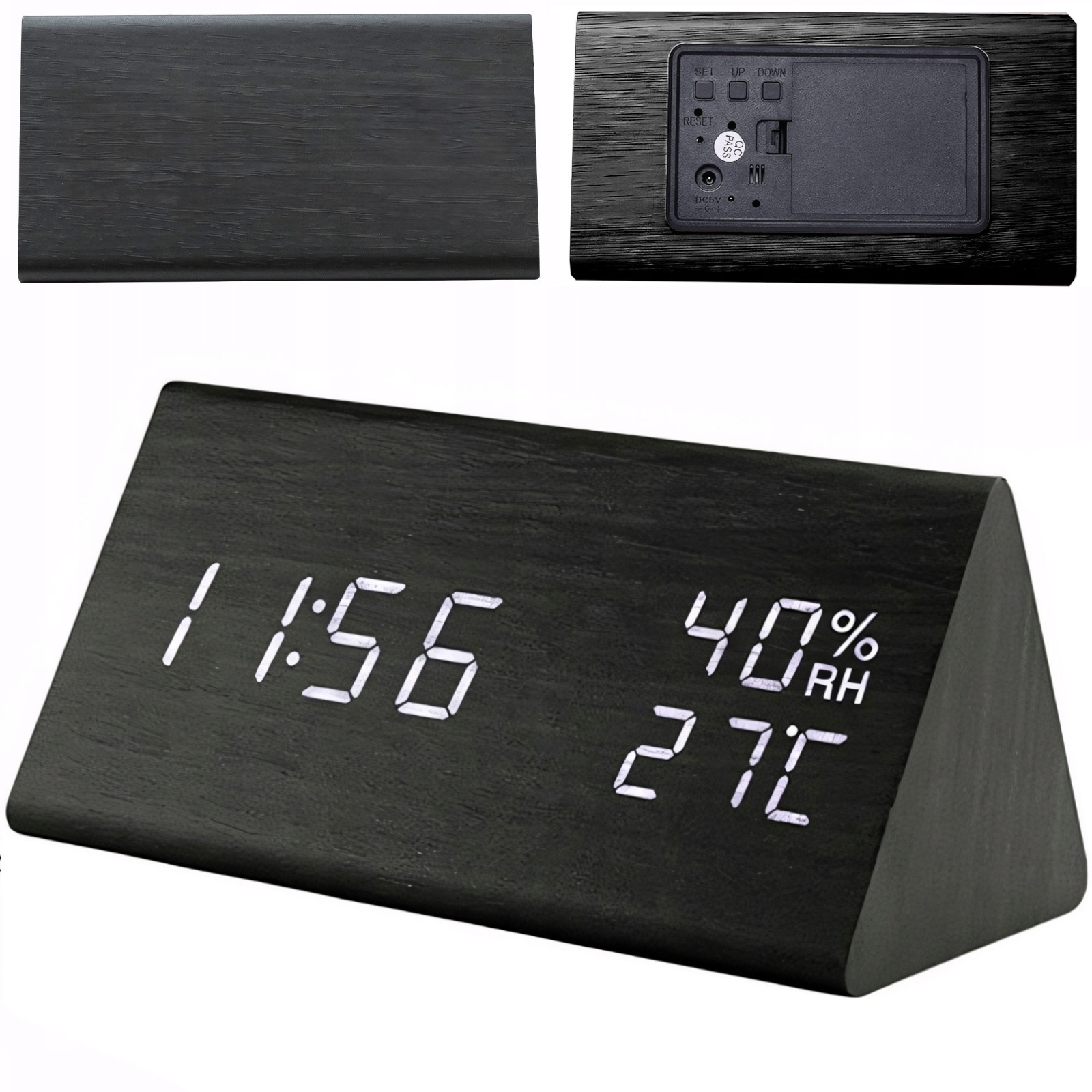Zegar budzik cyfrowy z termometrem wilgotnością podświetlany 3 alarmy