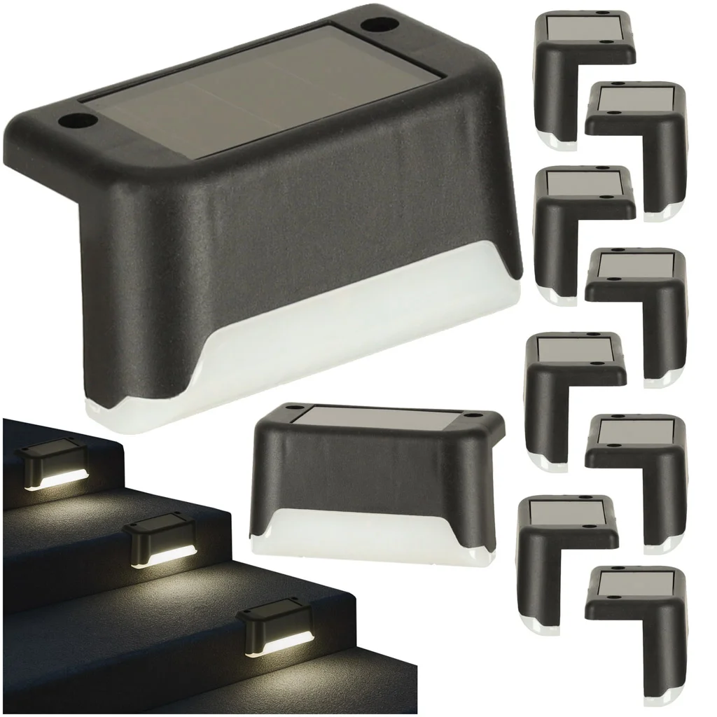 Lampa solarna schodowa ogrodowa zewnętrzna LED na schody czujnik zmierzchu 8 sztuk