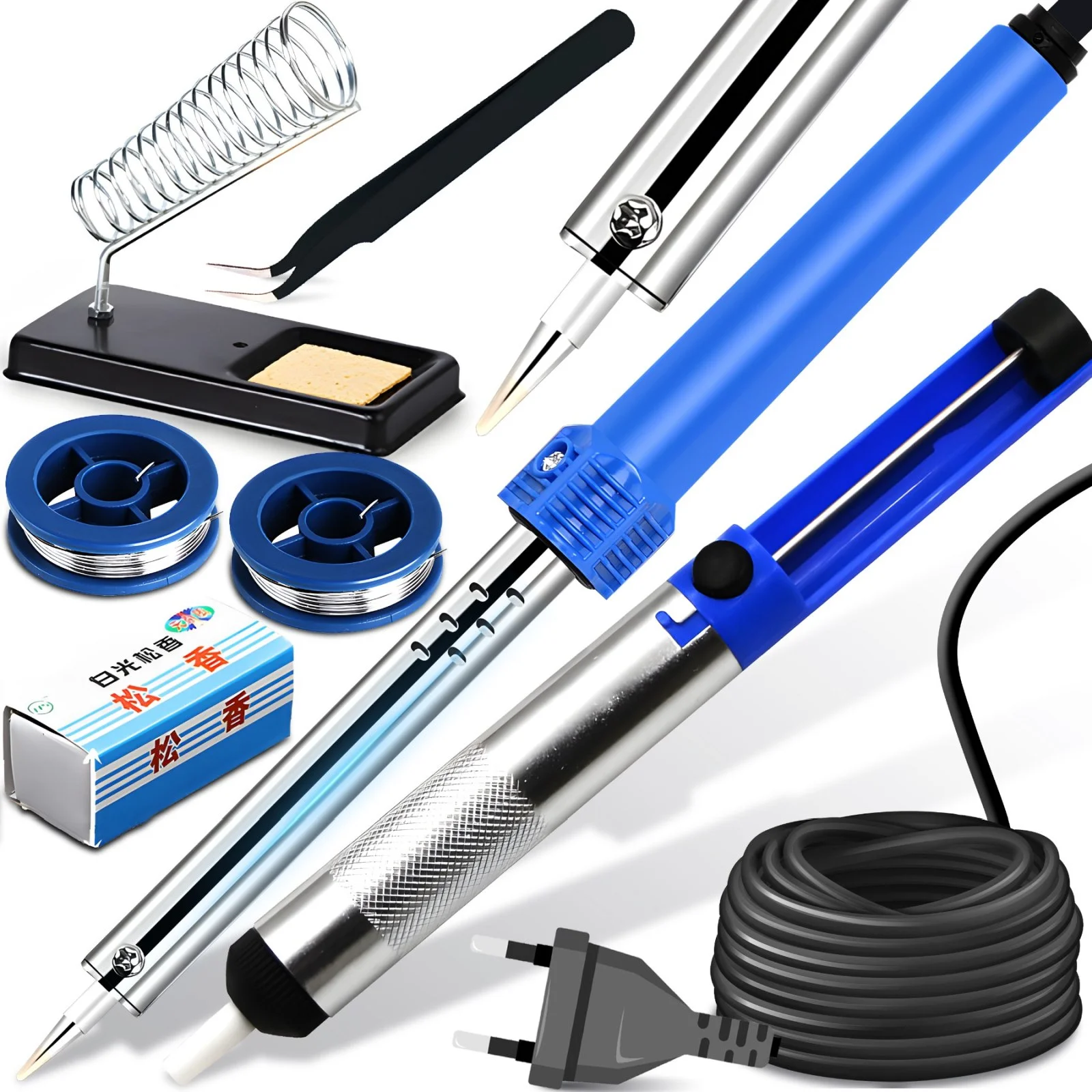 Lutownica kolbowa z podstawką uchwytem pęsetą kalafonią 60 W - zestaw 7 el.