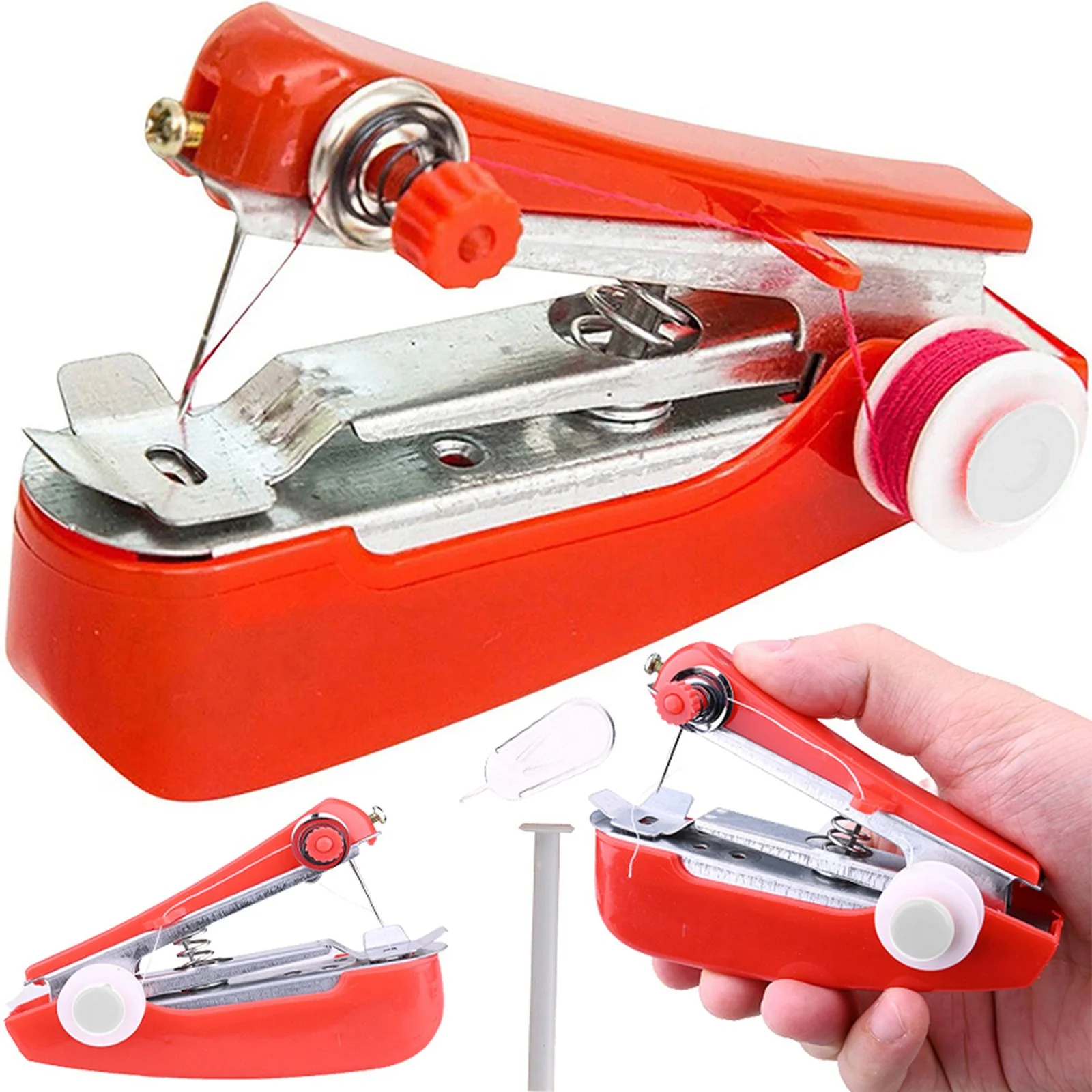 Mini maszyna do szycia ręczna przenośna bez zasilania - czerwona