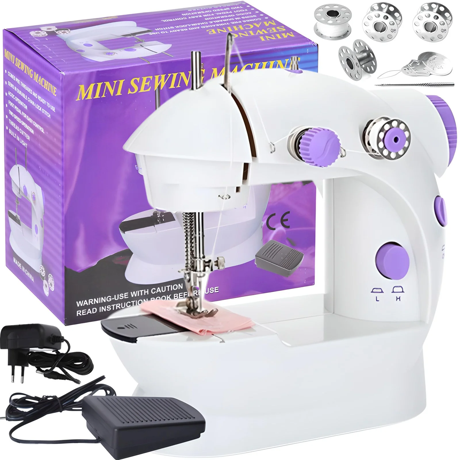 Mini maszyna do szycia dla dzieci 2 prędkości lampka LED - zestaw