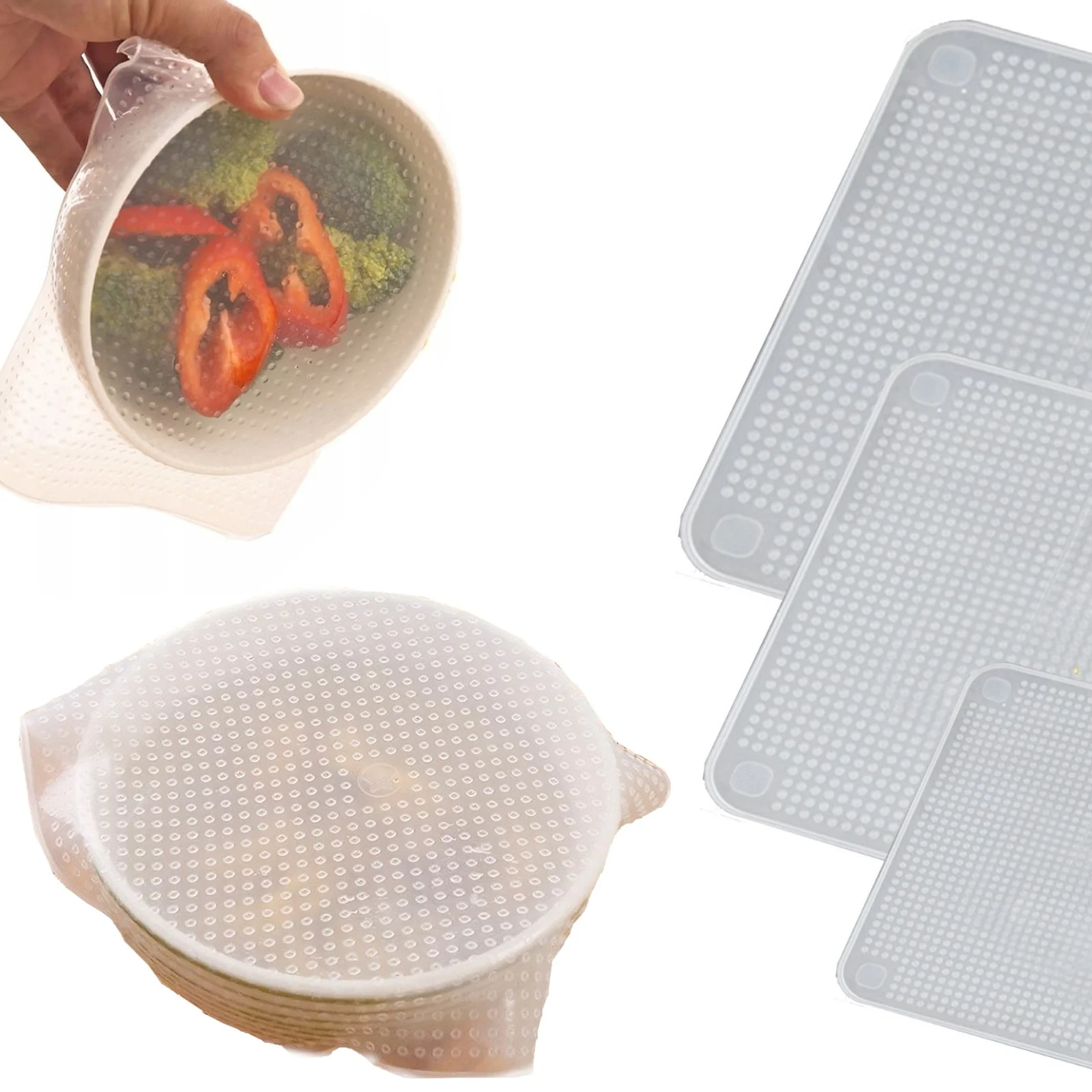 Pokrywki silikonowe uniwersalne do żywności pojemników - 4 szt.