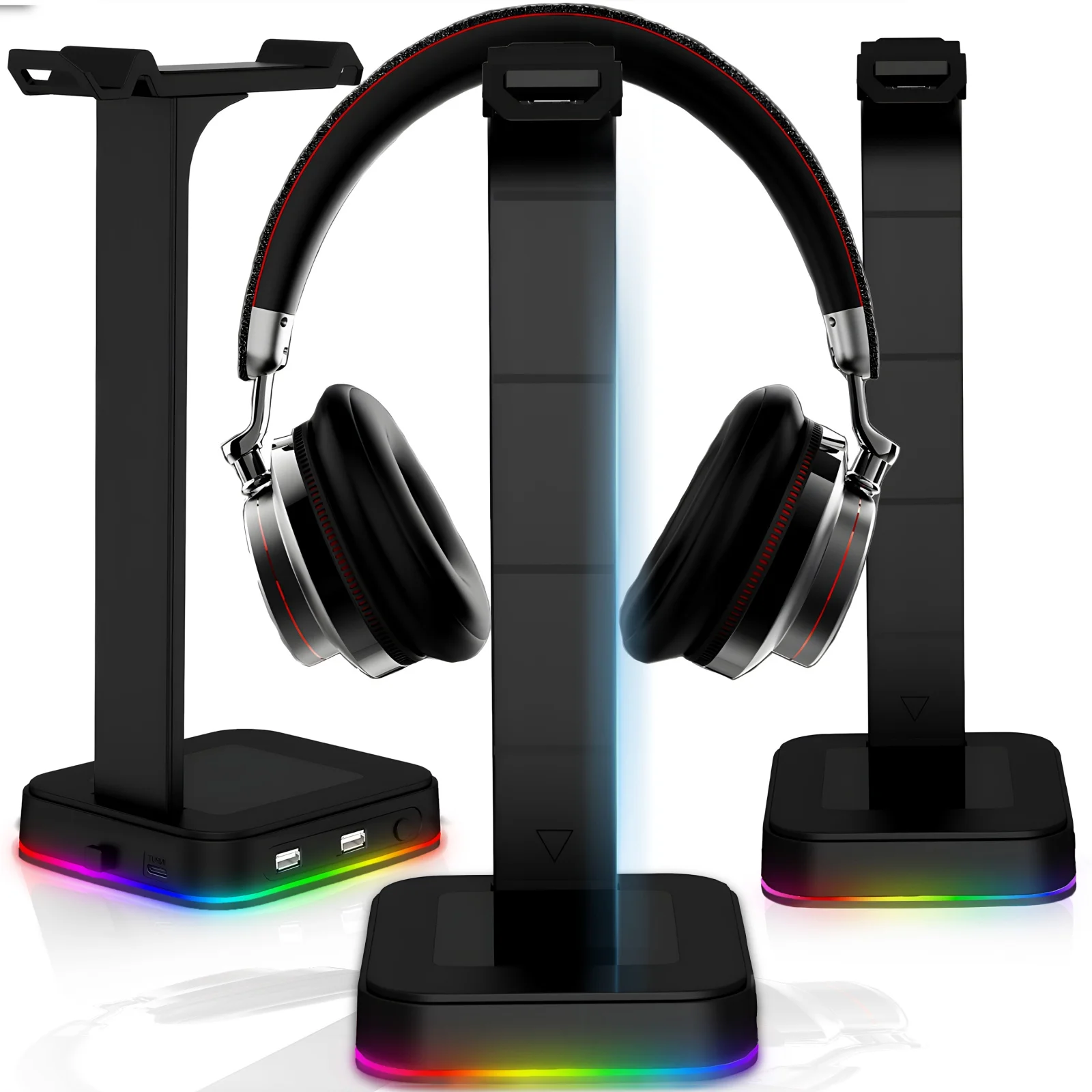 Stojak uchwyt biurkowy gamingowy na słuchawki HUB USB podświetlany RGB LED