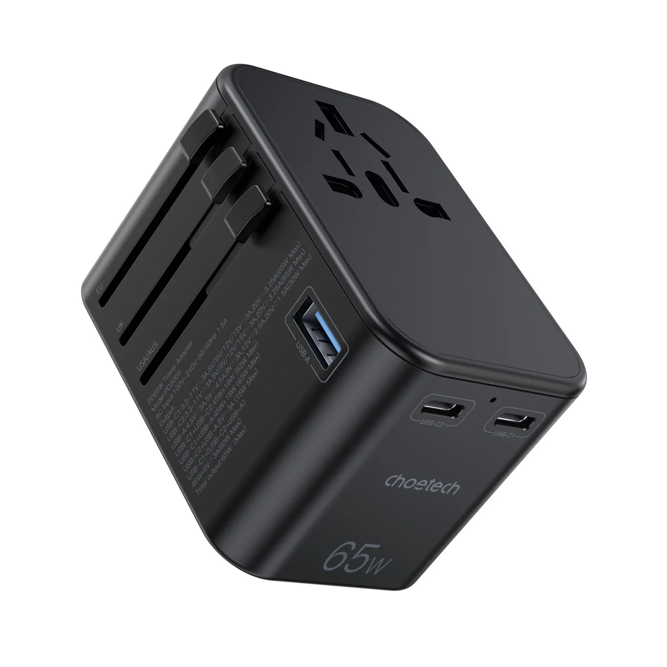 Szybka ładowarka podróżna wtyczka UE UK USA AUS 3xUSB 30-65W czarny