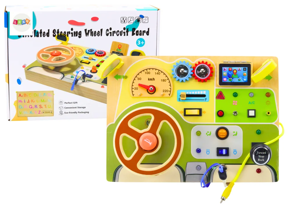Tablica manipulacyjna sensoryczna montessori walizka pokrętła miś XXL światło dźwięk