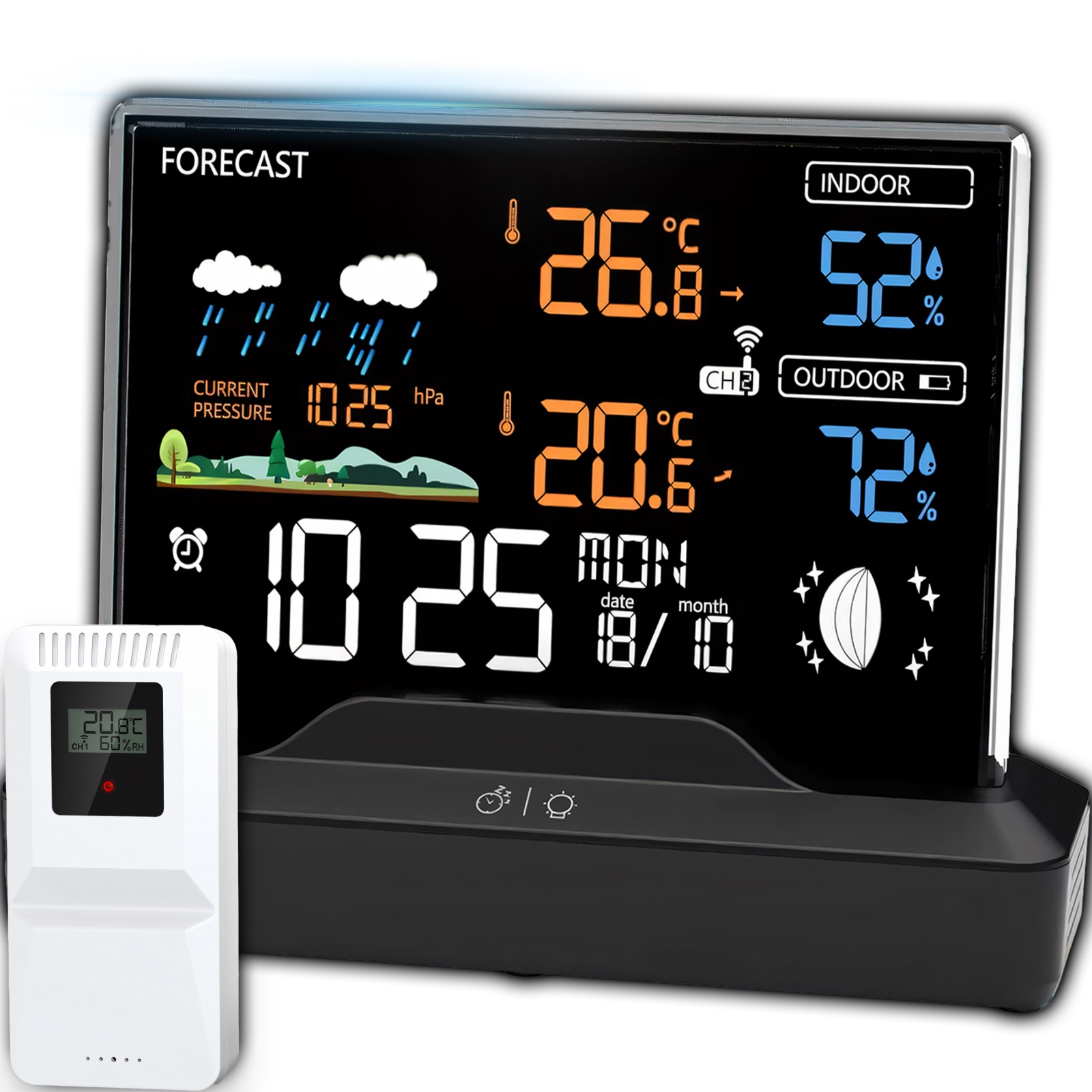 Stacja pogodowa bezprzewodowa zegar termometr higrometr barometr 1 czujnik 80 m LCD