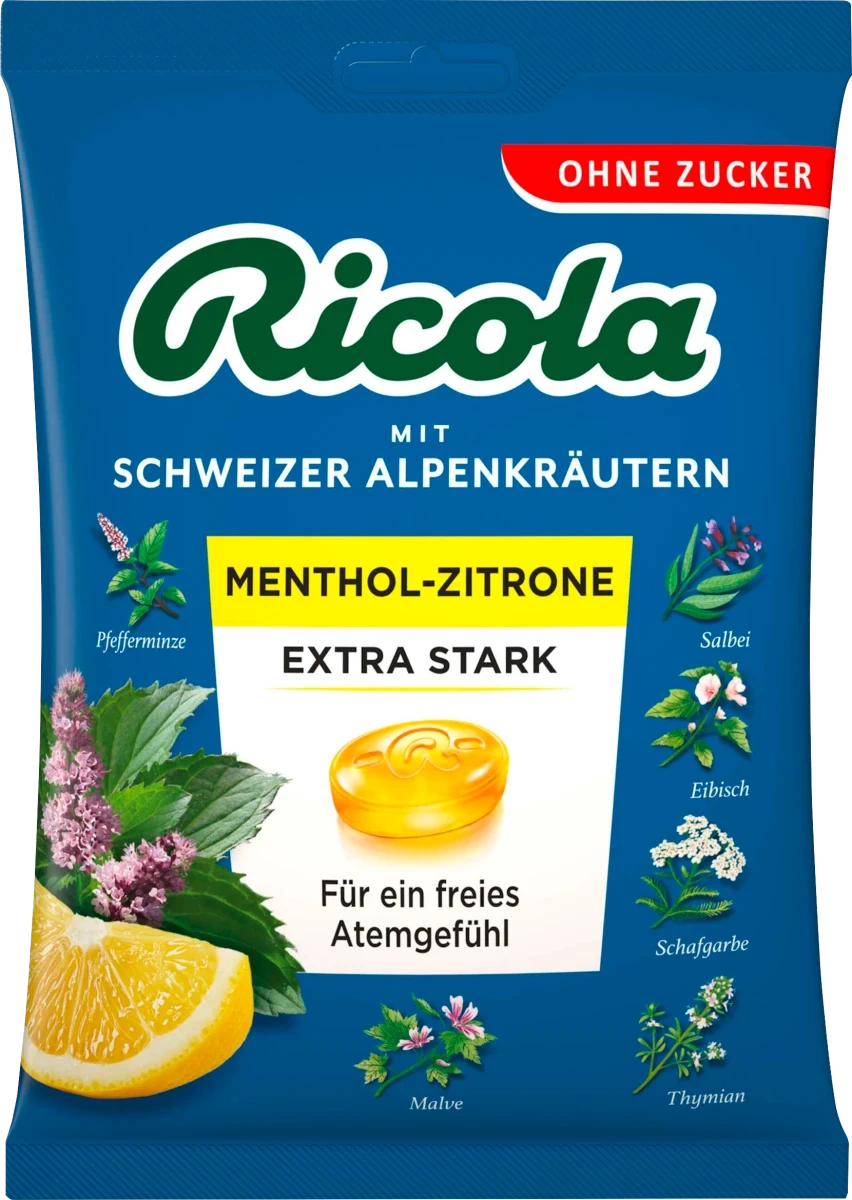 Ricola Menthol Zitrone Extra Stark Cukierki bez Cukru 75 g