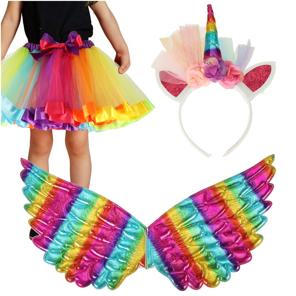 Kostium strój karnawałowy przebranie jednorożec spódnica opaska z rogiem skrzydła