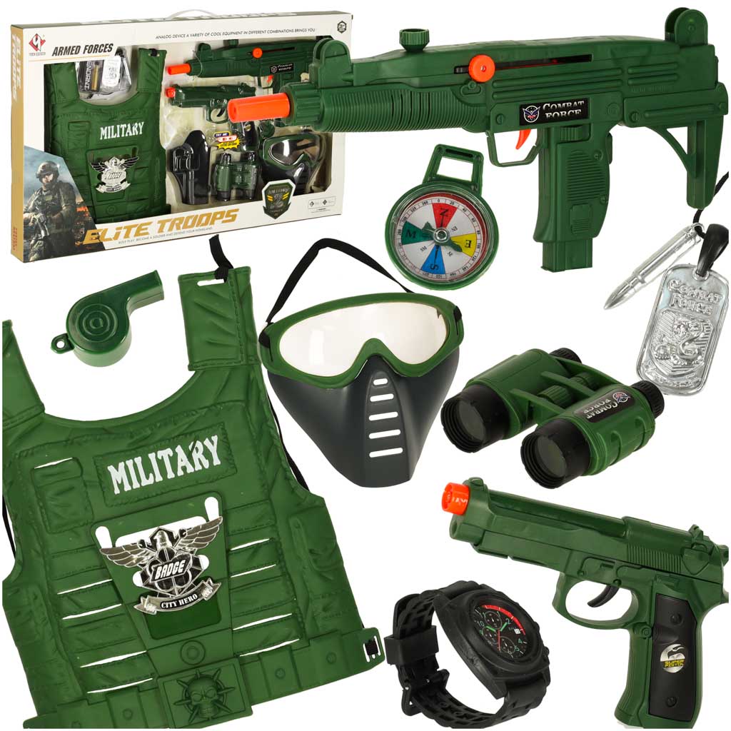 Zestaw wojskowy strój kamizelka karabin lornetka