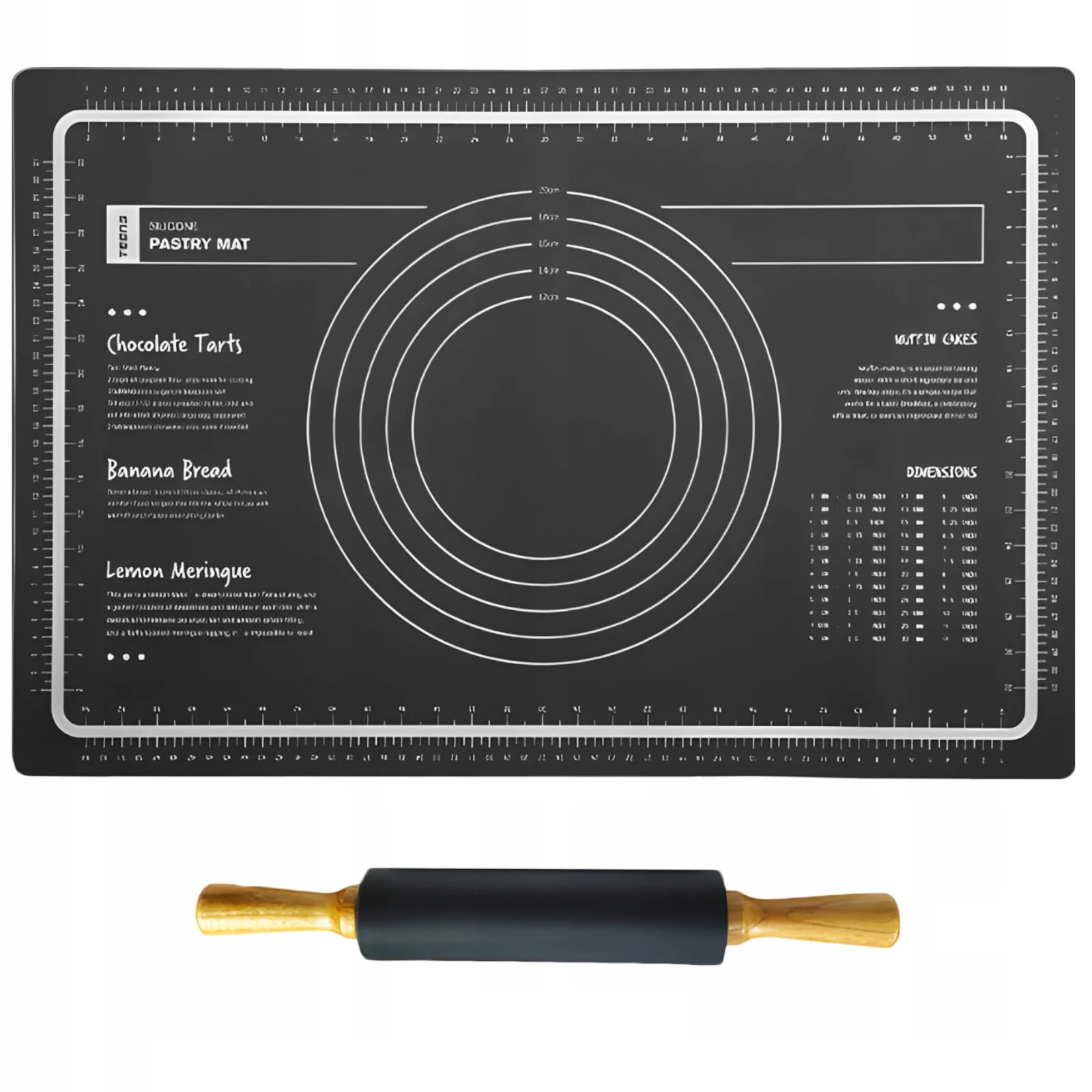 Zestaw wałek i stolnica mata silikonowa z podziałką do ciasta 60 x 40 cm - czarne