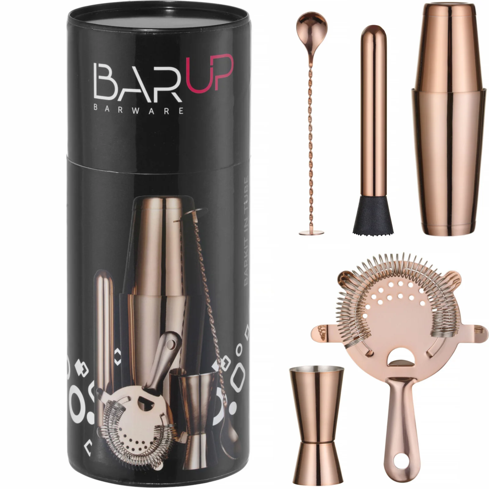 Zestaw barmański w tubie shaker jigger sitko muddler łyżka - miedziany