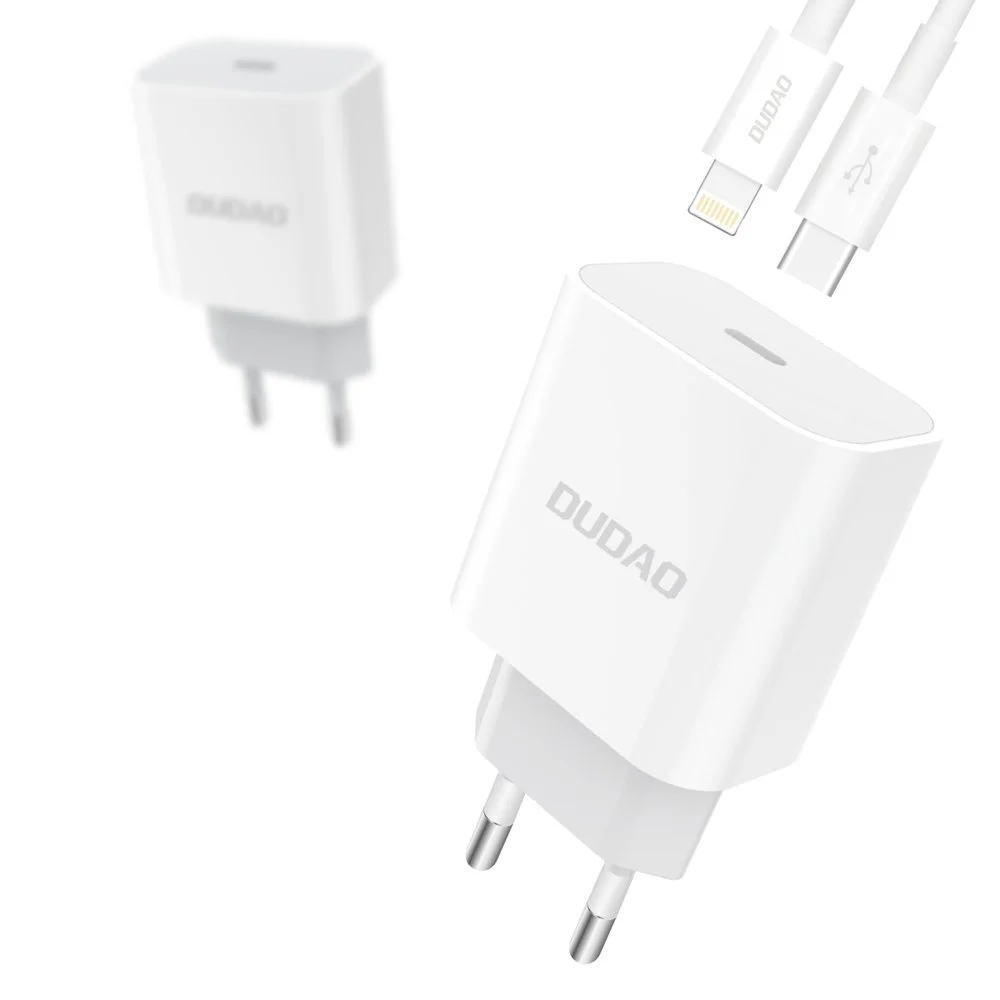 Szybka ładowarka sieciowa EU USB-C PD + przewód Lightning do iPhone 1m w kolorze białym to doskonałe rozwiązanie dla wszystkich użytkowników, którzy cenią sobie szybkie i efektywne ładowanie swoich urządzeń mobilnych. Dzięki zaawansowanej technologii, ładowarka marki Dudao gwarantuje błyskawiczne odnawianie energii dla smartfonów, tabletów, a nawet laptopów.