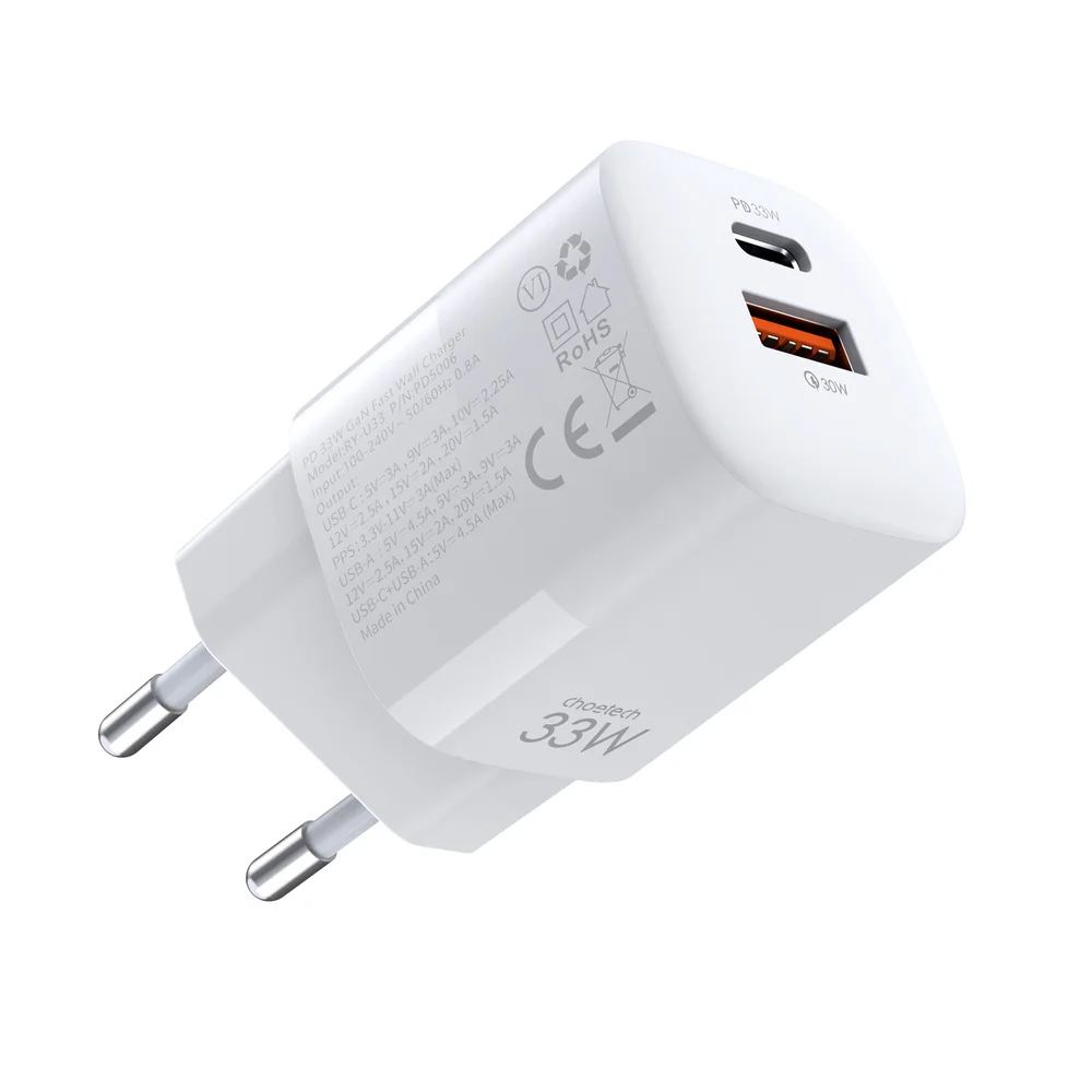 Szybka ładowarka sieciowa GaN USB Typ C PD QC 33W w kolorze białym to idealne rozwiązanie dla tych, którzy cenią sobie wygodę i efektywność ładowania. Dzięki nowoczesnej technologii GaN, ładowarka ta zapewnia wysoką moc ładowania, co pozwala na naładowanie dwóch urządzeń jednocześnie, znacznie przyspieszając cały proces.