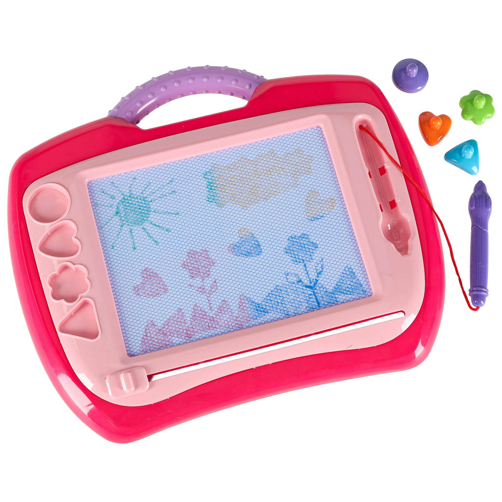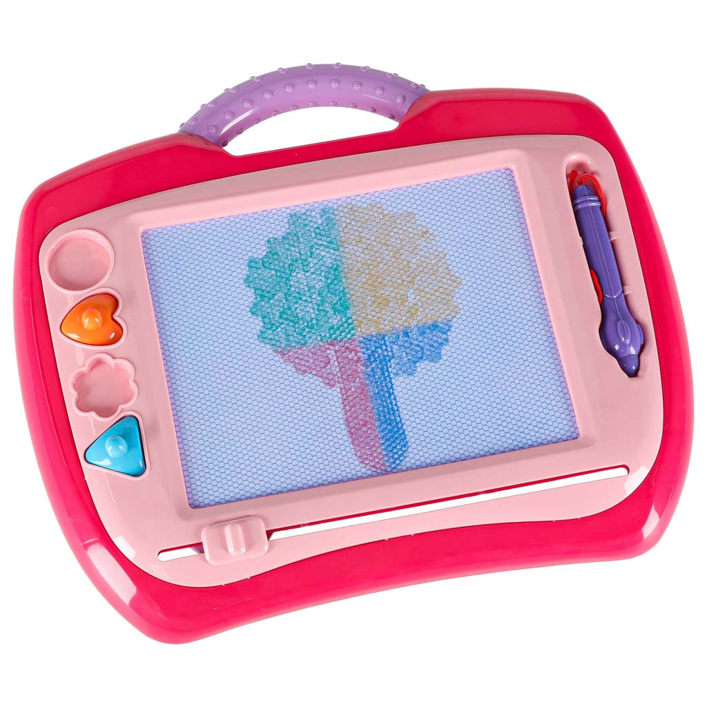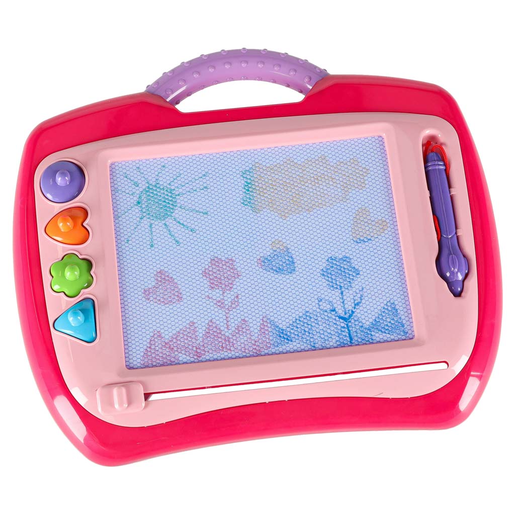 Tablica magnetyczna do rysowania to doskonałe rozwiązanie dla małych artystów! Umożliwia nieograniczone tworzenie rysunków bez potrzeby ciągłego zakupu papieru. Dzięki niej Twoje dziecko może rozwijać swoją kreatywność i zdolności manualne, korzystając z rysika oraz czterech kolorowych stempelków, które znajdują się w zestawie.