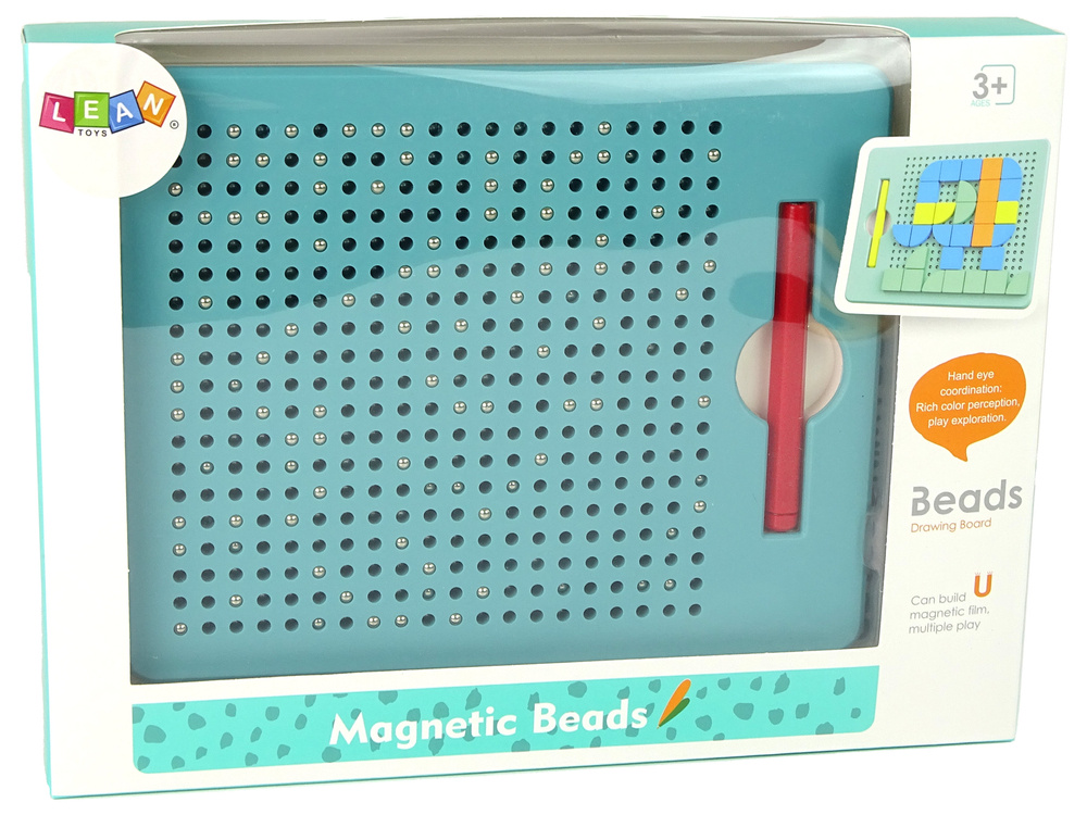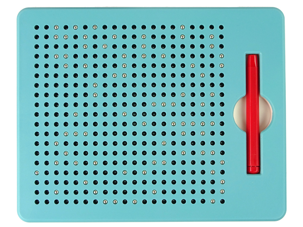 Każdy obrazek można łatwo ukryć. We wnętrzu zamkniętej tablicy znajdują kuleczki, a na powierzchni tablicy otwory. W trakcie przesuwania namagnesowaną końcówką pisaka po otworach kuleczki tworzą dzieło. Co zrobić, aby obrazek zniknął? Wystarczy płaską powierzchnią lub palcem przesunąć po rysunku, a kuleczki schowają się do środka.