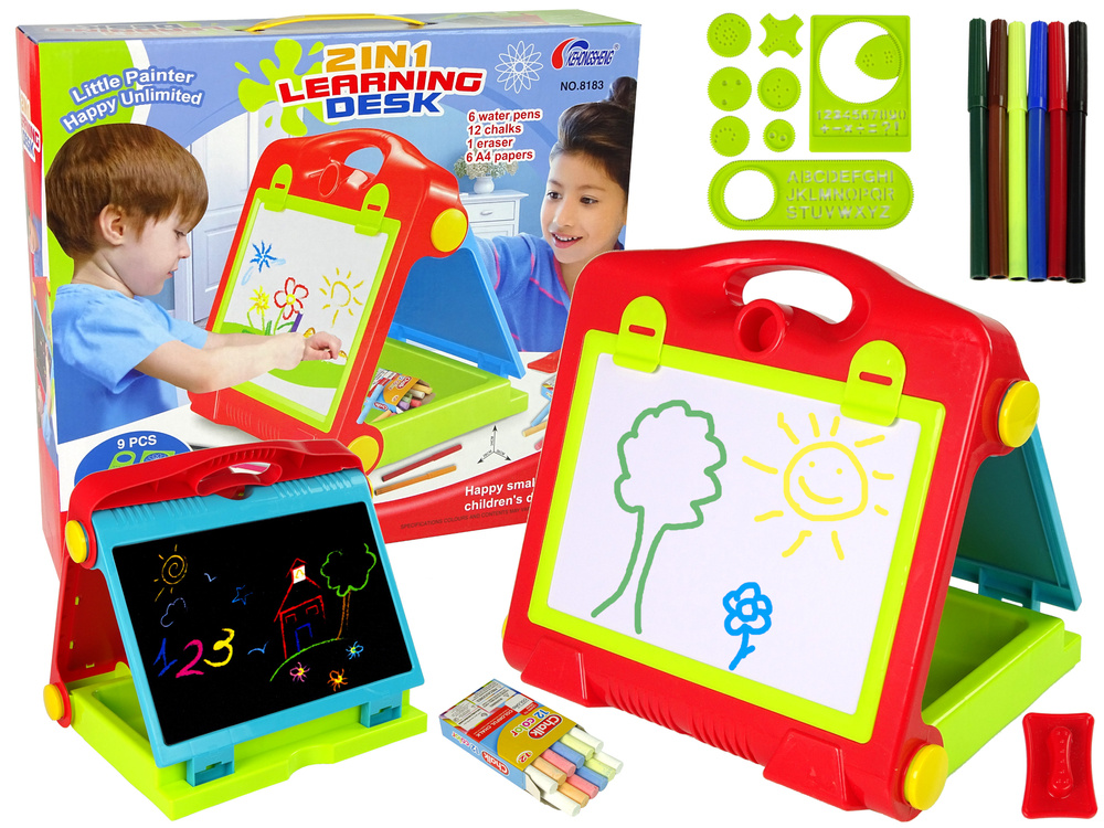 Tablica Dwustronna Kredowa Pisaki Stojąca Projektor Obrazki Czerwona