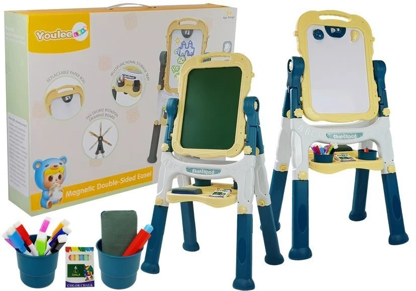 Tablica Edukacyjna 2 w 1 Niebieska Kredy Pisaki
