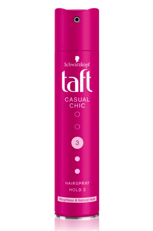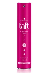Produkt został stworzony z myślą o włosach narażonych na stres. Dzięki specjalnej formule, Taft Casual Chic chroni przed wysuszeniem i utratą wilgoci. Utrwalenie fryzury trwa do 24 godzin, oferując mocne wsparcie bez sklejania włosów.