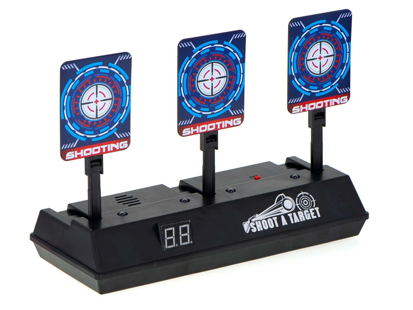 Tarcza do strzelania do wyrzutni karabinu to nowoczesna elektroniczna strzelnica, która dostarczy niezapomnianych wrażeń zarówno dzieciom, jak i dorosłym! Dzięki trzem celom oraz licznikowi cyfrowemu, możesz sprawdzić swoją celność i poprawić umiejętności strzeleckie.
