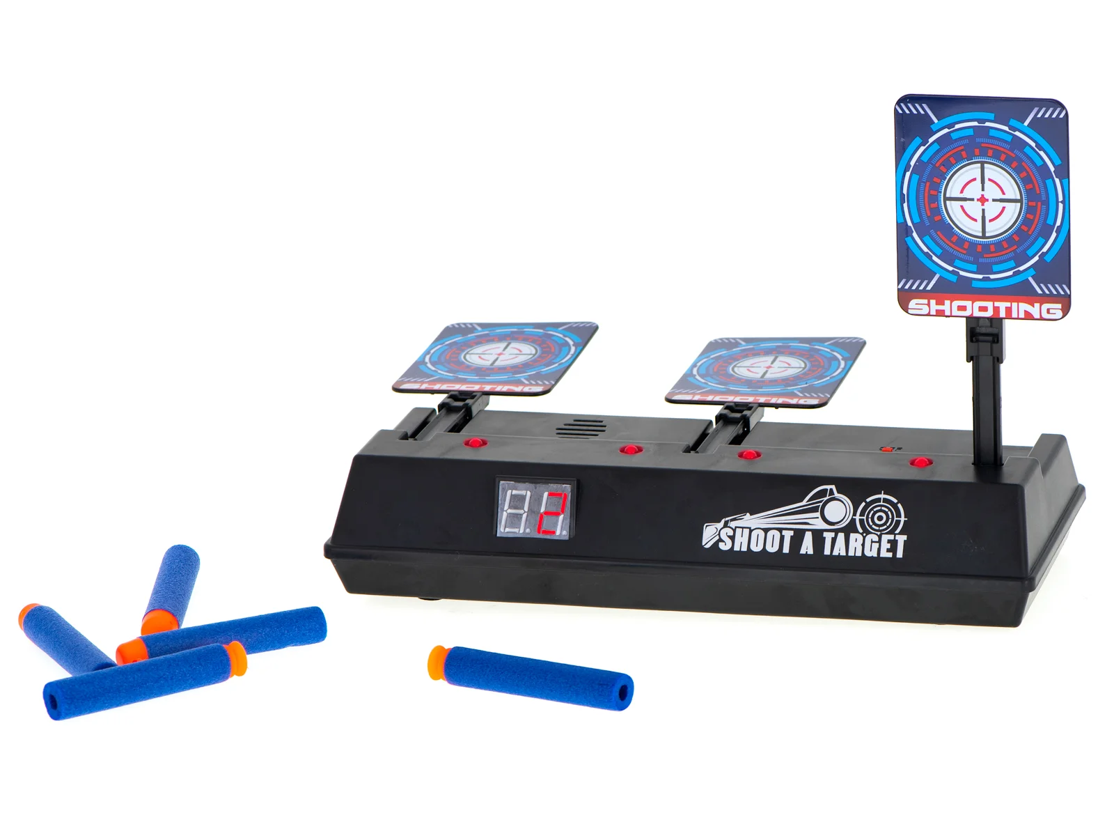 Tarcza jest kompatybilna z pistoletami na piankowe strzałki i oferuje ekscytujące efekty świetlne oraz dźwiękowe. Po każdym trafieniu słychać dźwięk tłuczonego szkła lub oklaski, co sprawia, że zabawa staje się jeszcze bardziej angażująca. Dodatkowo, tarcza jest wyposażona w dwucyfrowy licznik punktów, co umożliwia rywalizację pomiędzy graczami. Po trafieniu cel kładzie się do tyłu, a przy zestrzelonych trzech tarczach, gracz zdobywa punkt, a wszystkie cele automatycznie wracają na swoje miejsce!